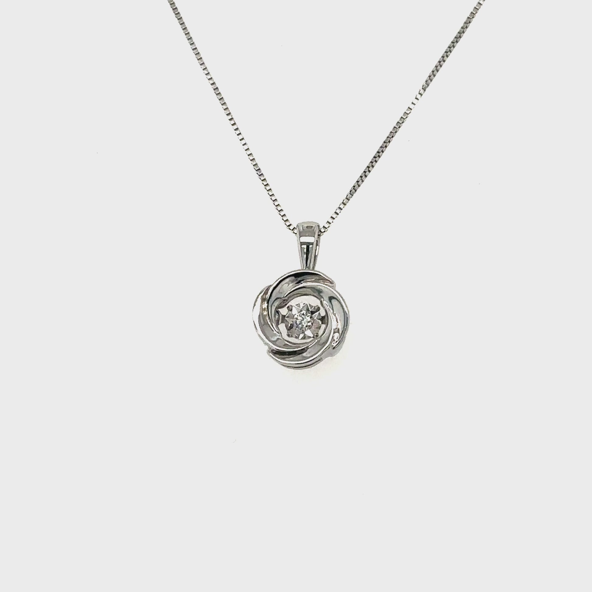 10K White Gold fancy pendant with solitaire in the centre which is on a special setting and moves with our body movement creating a nice motion and an amazing sparkle in the Diamond, featuring exceptional Design, Craftsmanship and finishing. This beautiful pendant can be worn by it self or layered with other pendants. Perfect gift for Mothers Day, Birthdays, Valentines Day, Graduation, Christmas or just about any other occasion. Includes fine 18 inch Chain.