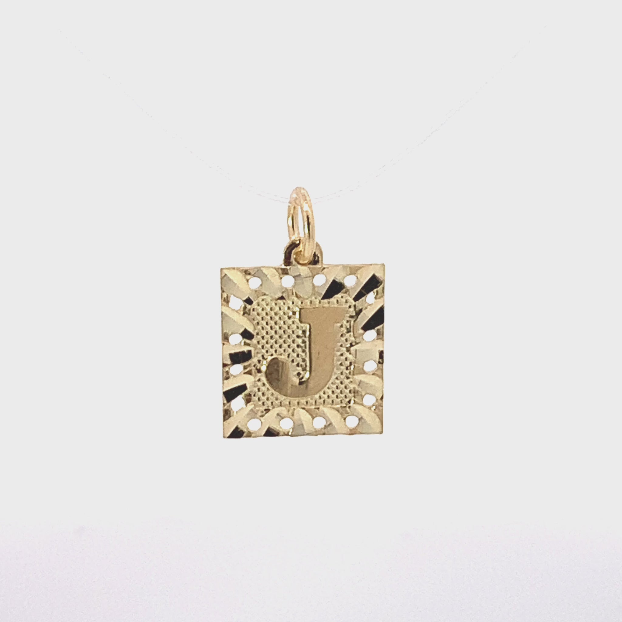 10K yellow gold initial letter J square pendant. This pendant features a letter initial pendant made of nothing less than the solid 10 karat yellow gold, this meaningful piece of fine jewelry stunningly shimmers in shiny polish and impressive finish. CHAIN IS NOT INCLUDED.
