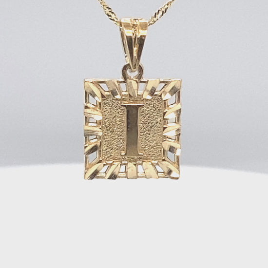 10K Solid Yellow Gold Initial Letter I Square Pendant