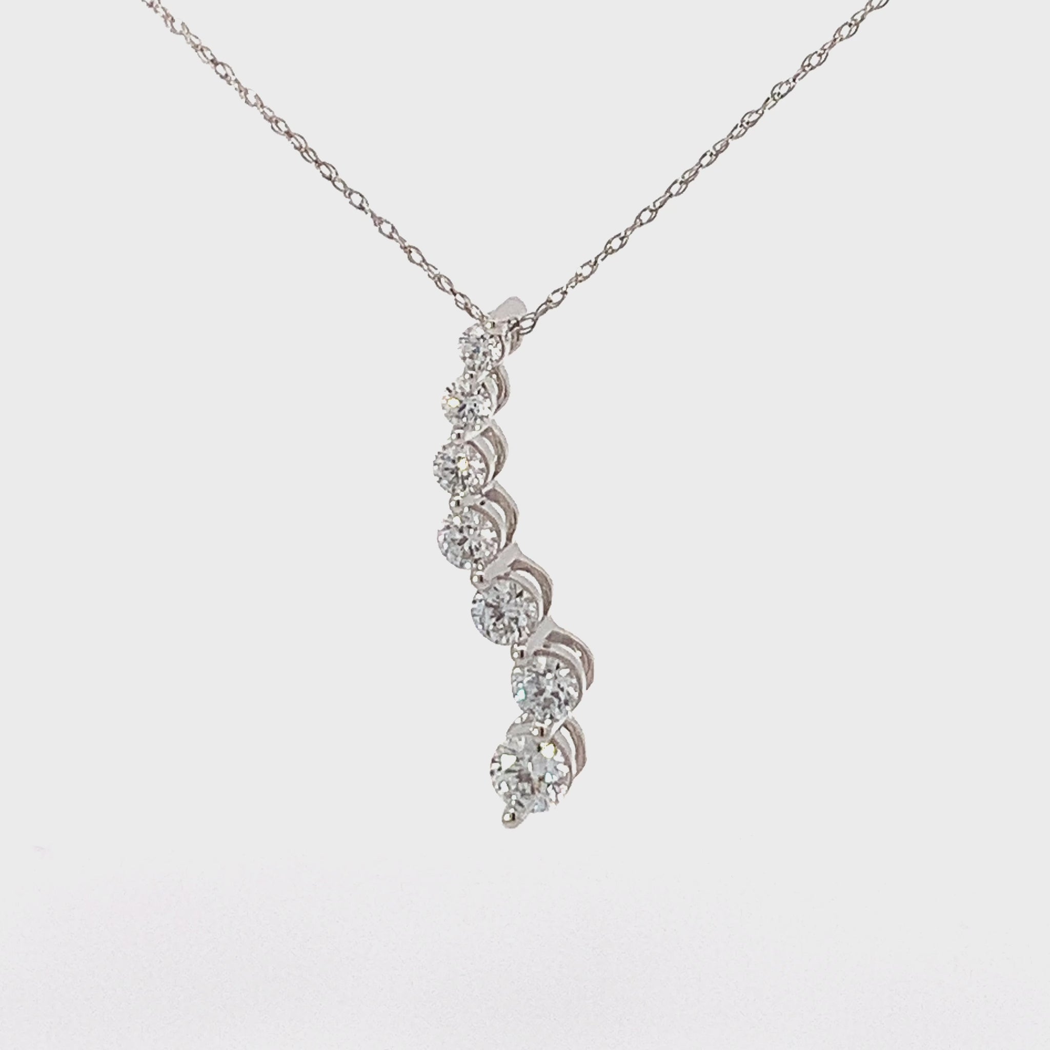 This journey pendant features a series of lab-grown diamonds that increase in size along an S-curve, totaling 1.00 carats. Set in 14K white gold, the pendant reflects a path of growth and shines with promise. It’s suspended on a fine chain, perfect for marking significant achievements or moments.