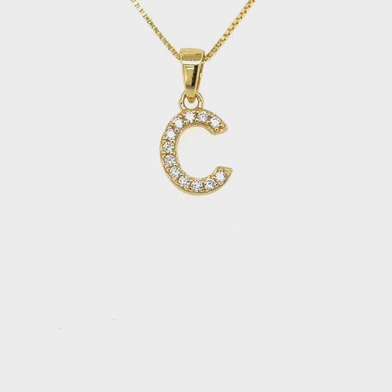 Yellow Gold Plated Sterling Silver CZ Letter C Pendant