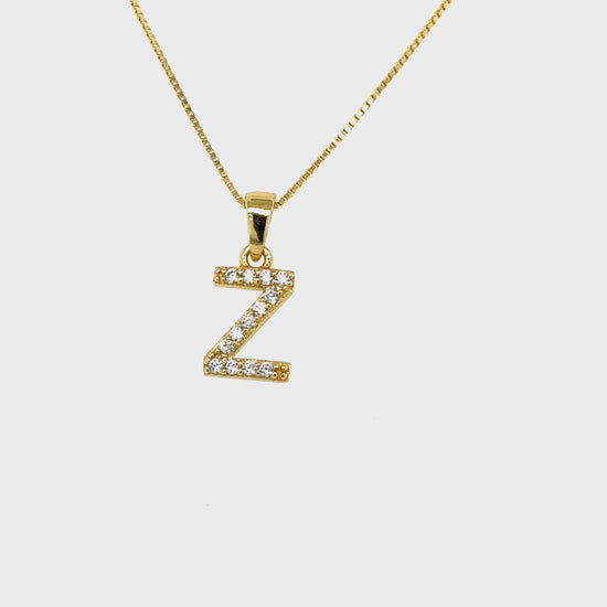 Yellow Gold Plated Sterling Silver CZ Letter Z Pendant