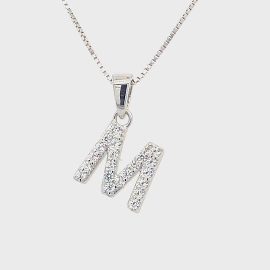 Cubic Zirconia and Sterling Silver Initial M Pendant