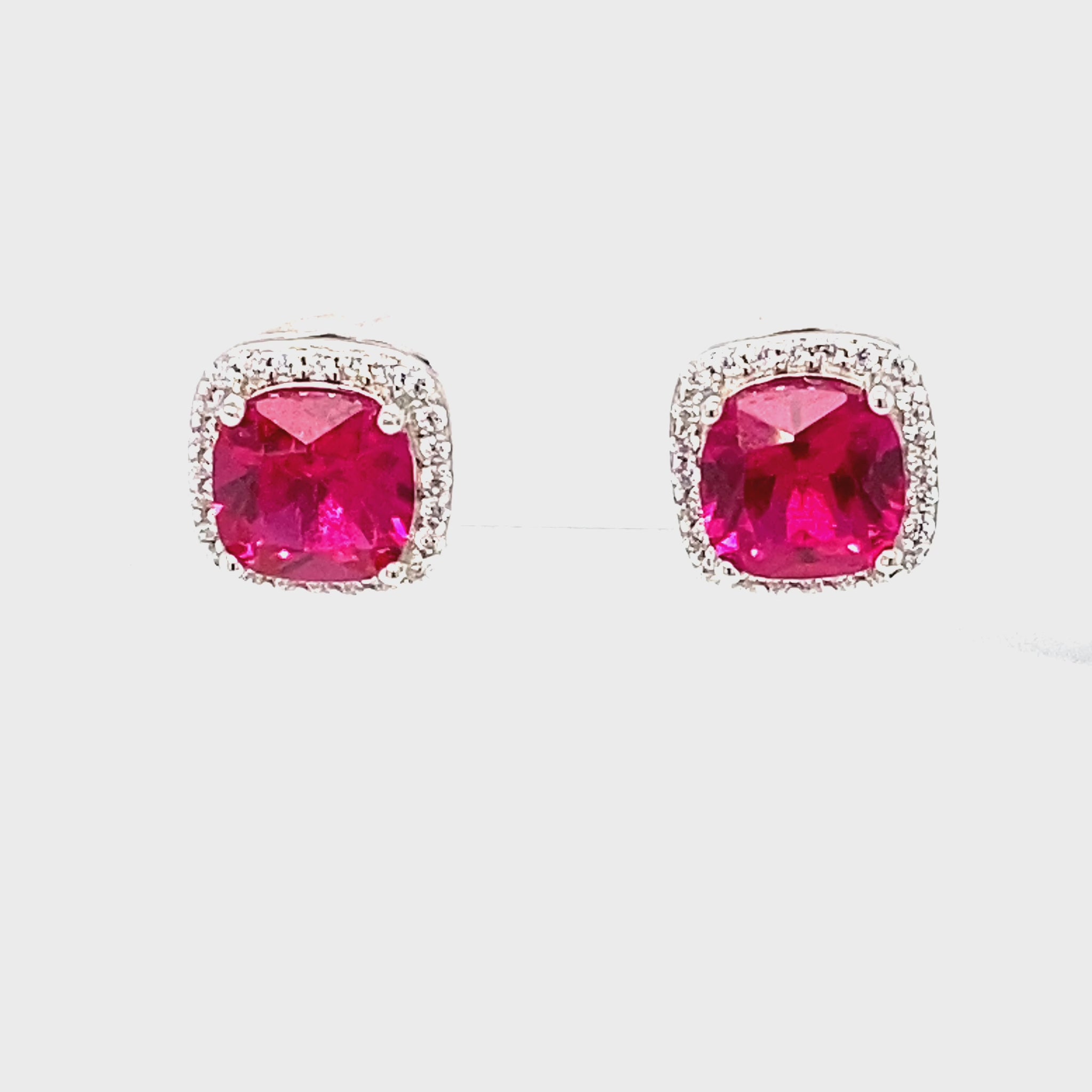 July Birthstone Ruby Color CZ Cushion Studs Earrings
