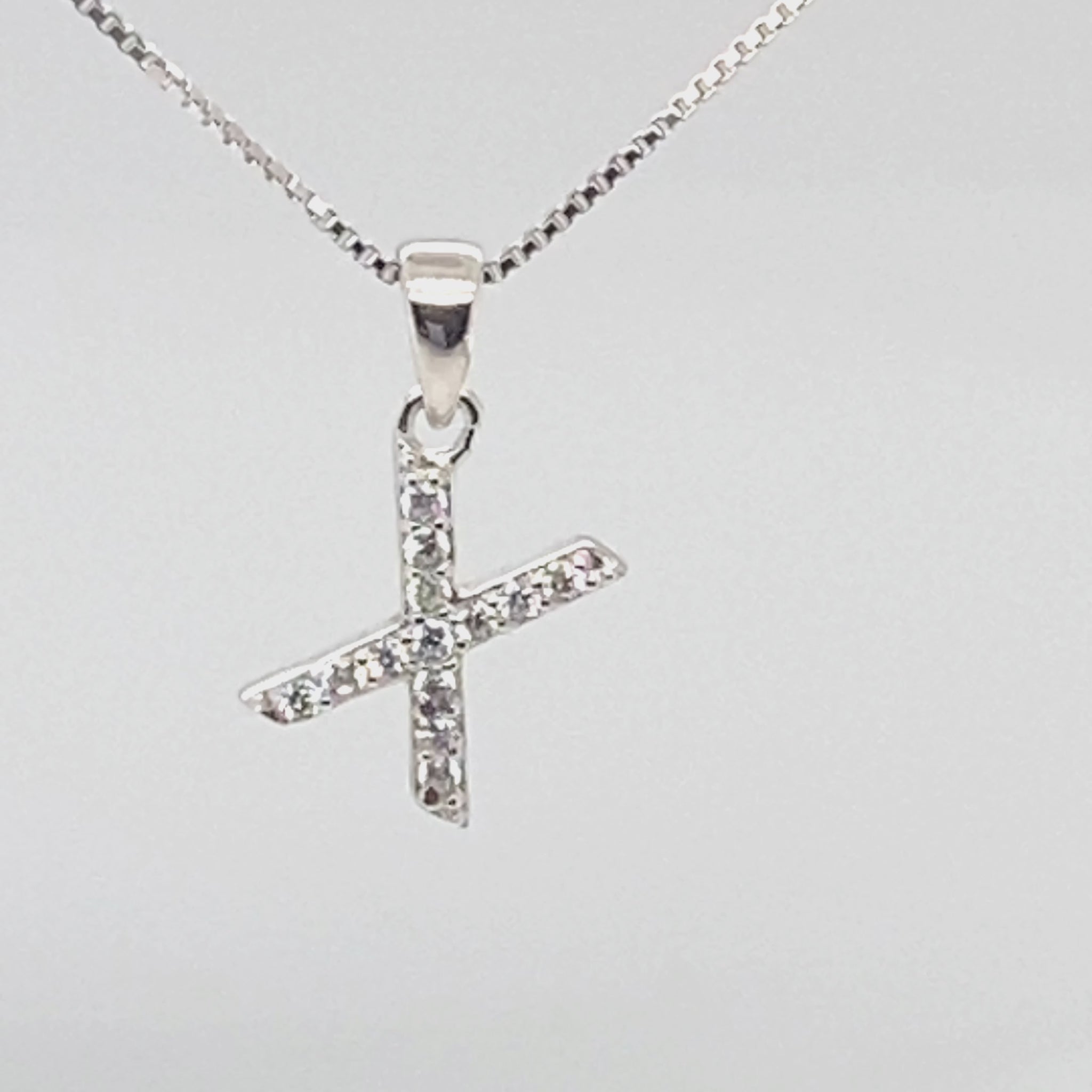 Sterling Silver Cubic Zirconia Initial Letter "X" Pendant