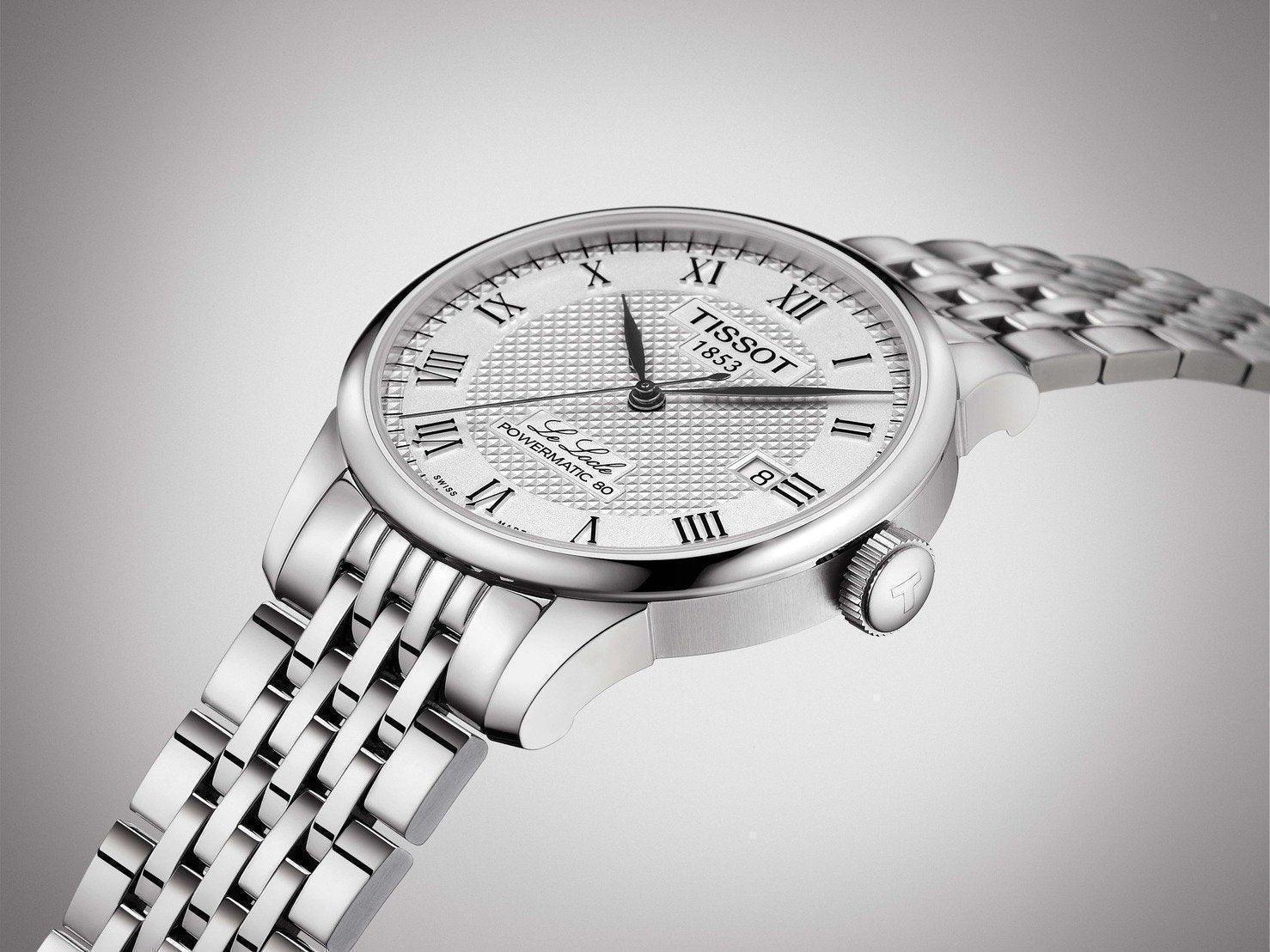 The name Le Locle seems to be a reliable ingredient of success. As well as being the name of Tissot's home and heritage, nestled in the Swiss Jura Mountains, it is the name of a hugely popular automatic watch family. The models display exquisite elegance with details such as Roman numerals and a traditional Le Locle signature which complete the picture of classical chic. 39.3mm stainless steel case. See-through case back. Scratch-resistant sapphire crystal. Silver dial with roman numbers. Swiss automatic with power reserve up to 80 hours.