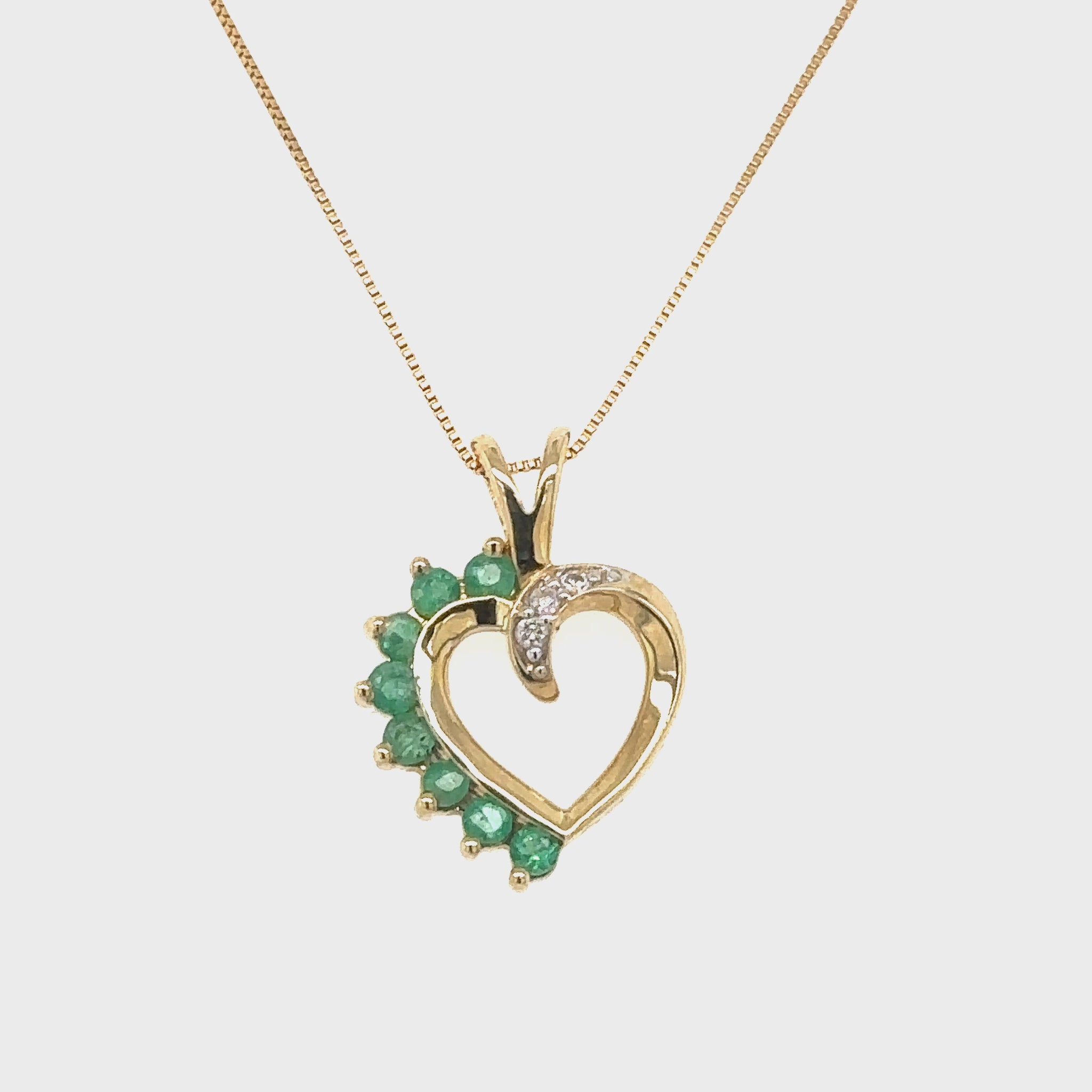 10K Yellow Gold Emerald & Diamond Heart Pendant