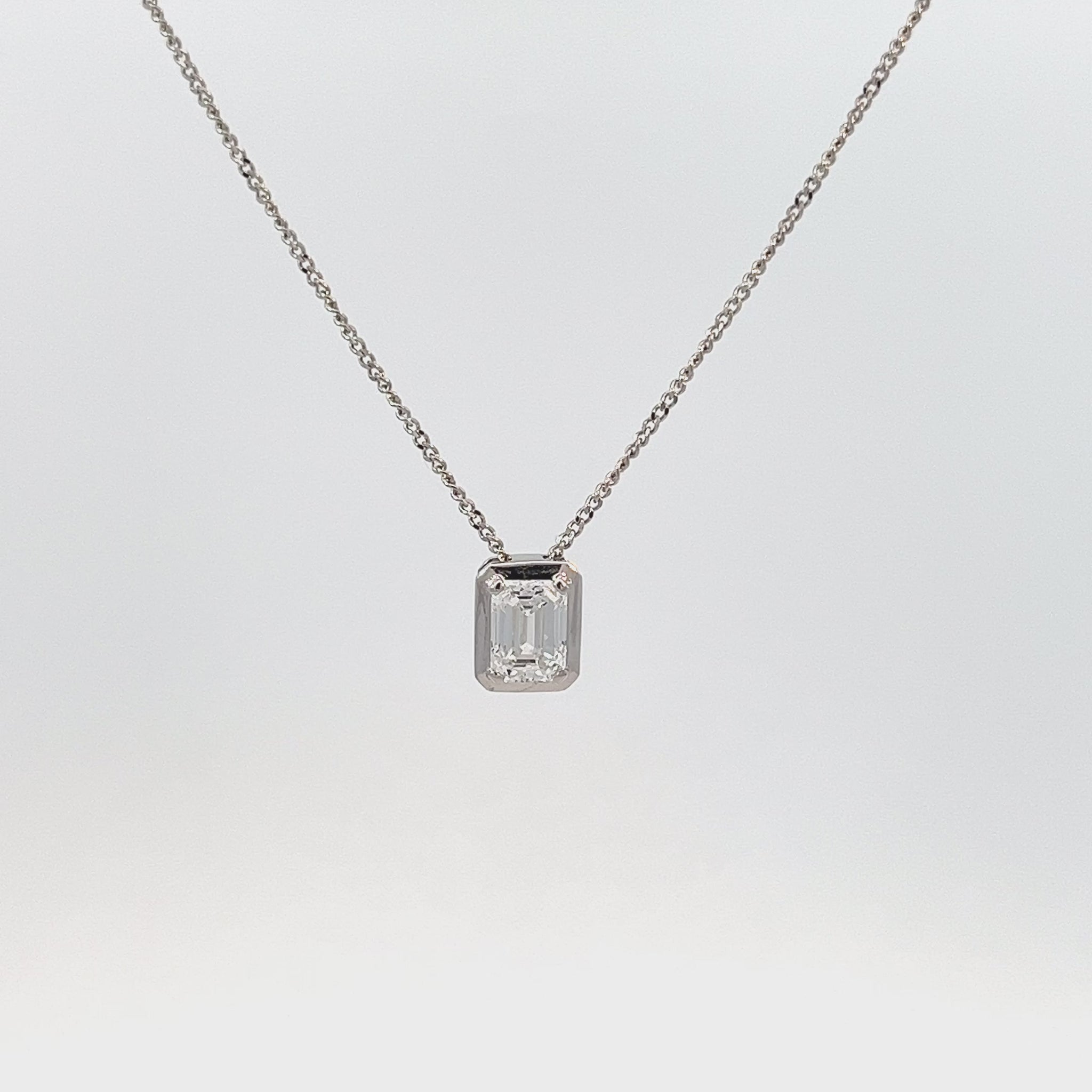10K White Gold 0.50CT Lab Diamond Emerald Cut Solitaire Pendant