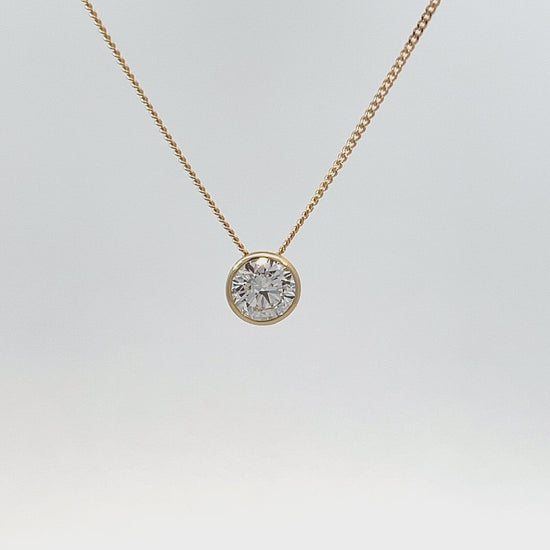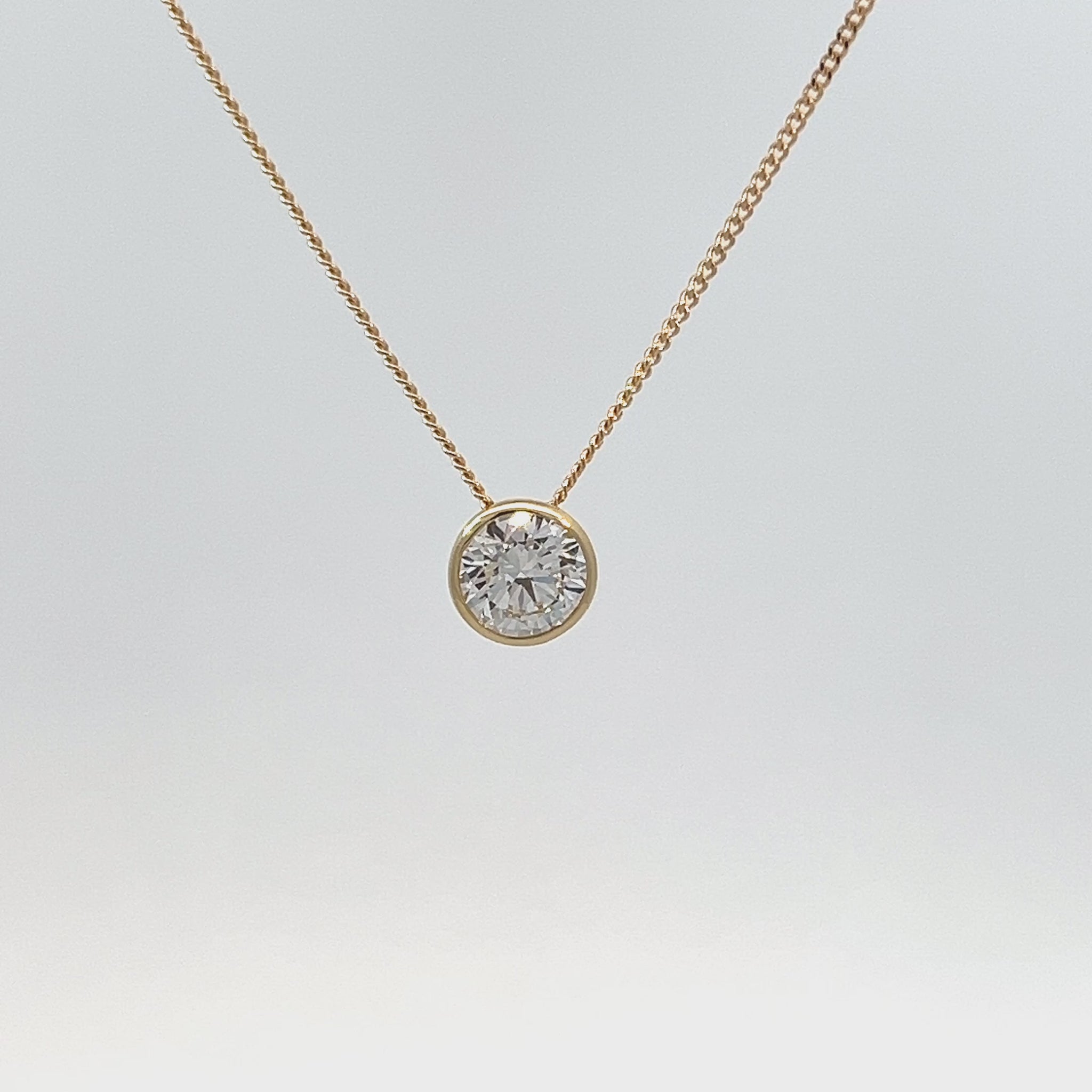 This exquisite 10K Yellow Gold pendant showcases a dazzling 0.70-carat lab-grown diamond in a sleek bezel setting. The pendant's minimalist design allows the diamond's natural brilliance to take center stage, making it a versatile accessory for any outfit. Perfect for everyday wear or special occasions, this pendant is a timeless addition to any jewelry collection.