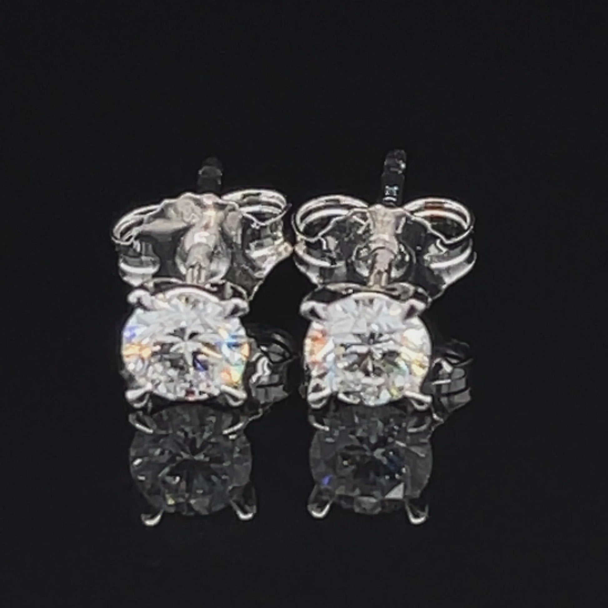 This classic solitaire women's diamond earring hosts a total of 0.50 carat of lab grown diamonds set in 14k white gold. These elegant earrings are set in a classic four-claw setting to add to brilliance. Add lots of star-style to your look with this radiant diamond earrings.