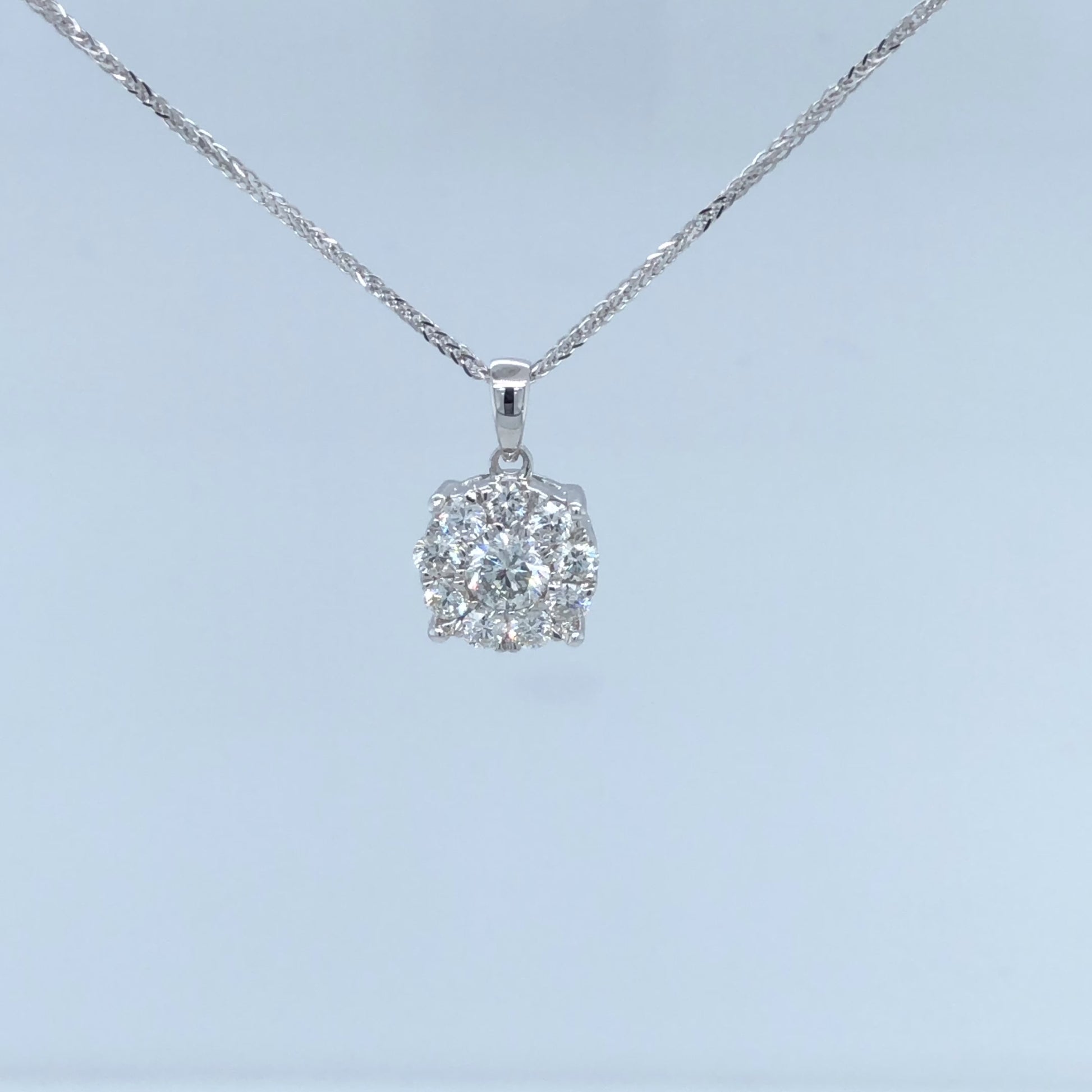 14K white gold 1.00 tdw diamond imperial pendant featuring exceptional design, craftsmanship and finishing. This beautiful pendant can be worn by it self or layered with other pendants. Perfect gift for Mothers Day, Birthdays, Valentines Day, Graduation, Christmas or just about any other occasion. Includes 10K White Gold fine 18 inch Chain.