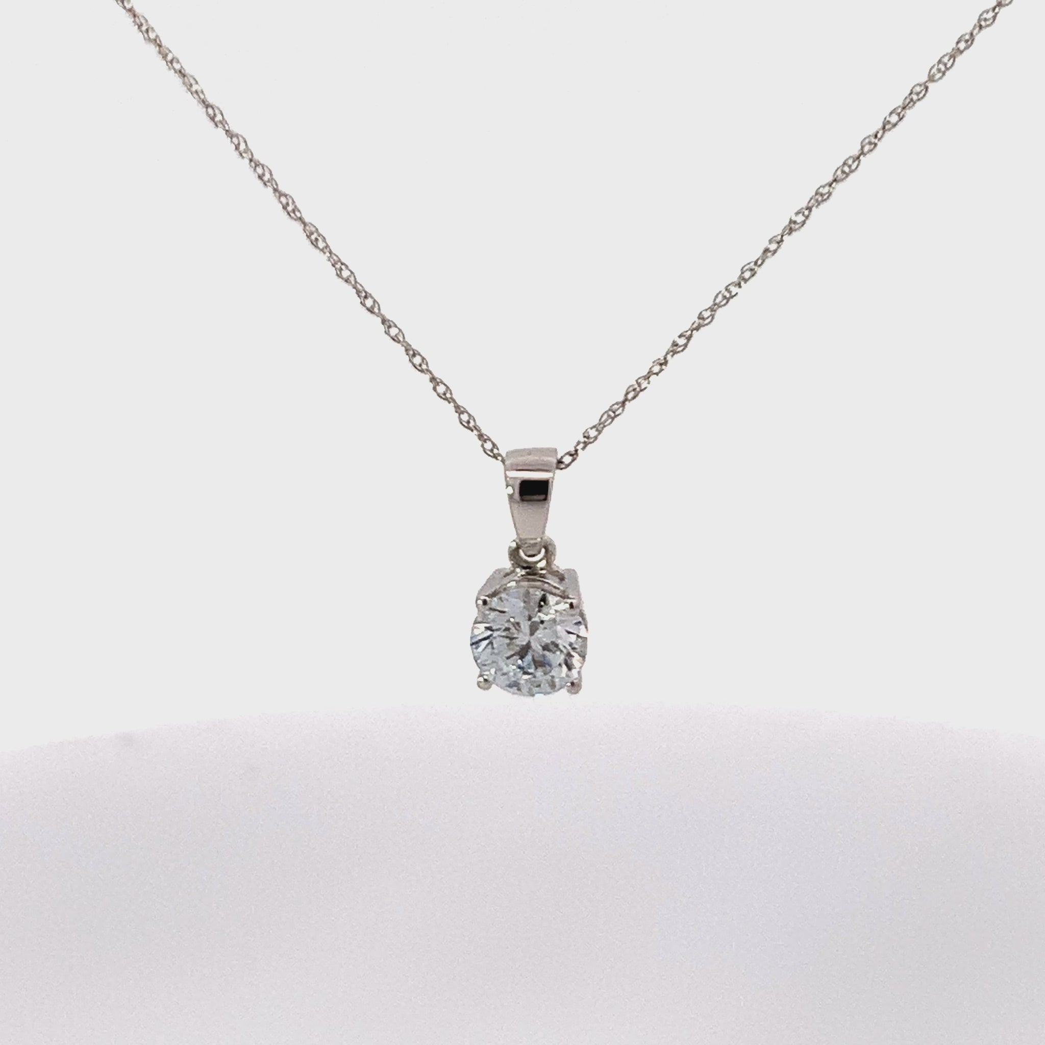 14K White Gold 1.00CT Lab Grown Diamond Solitaire Pendant w/Chain