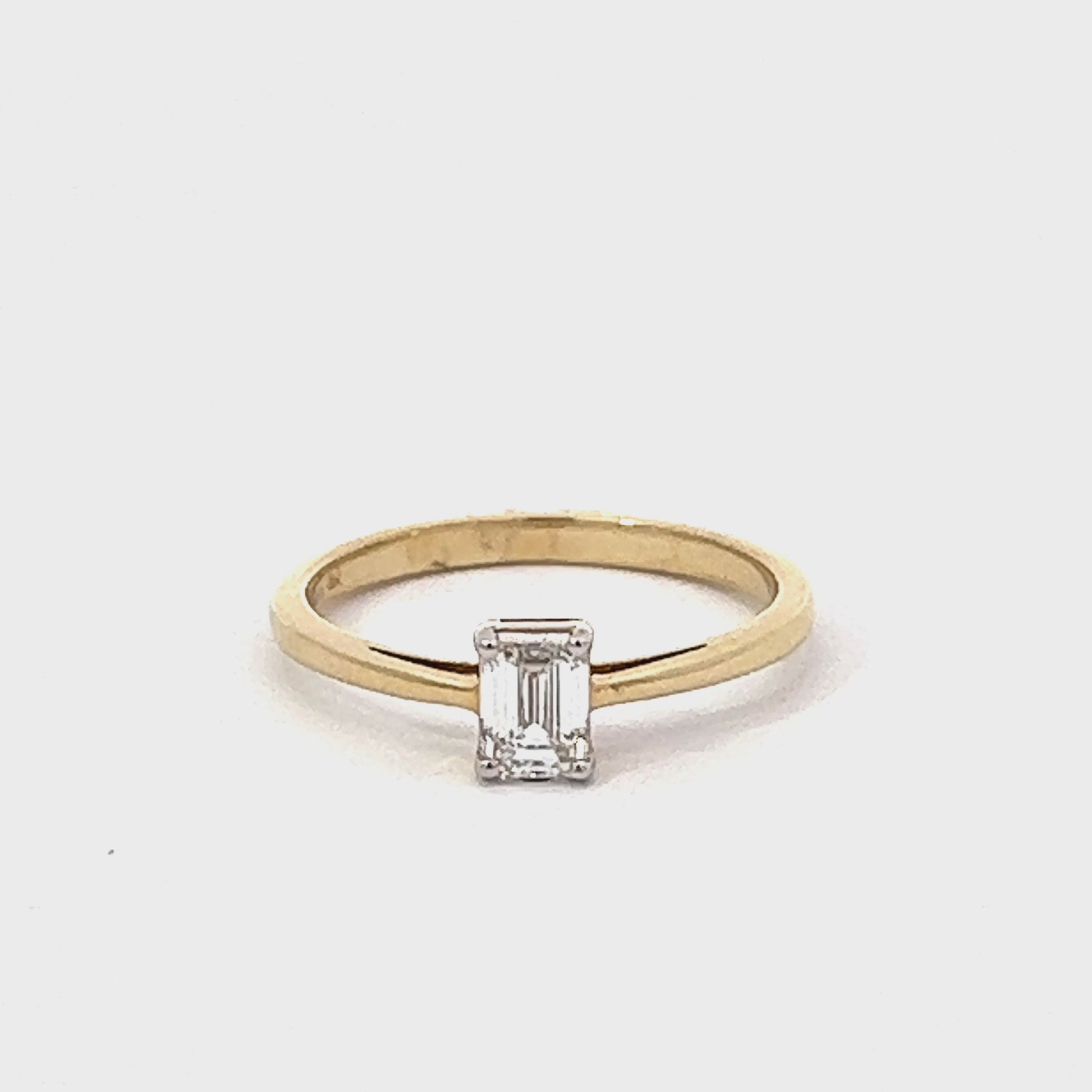 This elegant ring crafted from 14K yellow gold with 0.50 carat emerald-cut total diamond weight (TDW) of lab-created diamond. The emerald cut, known for its elongated shape and stepped facets, enhances the diamond’s beauty and brilliance. It's an Ideal accessory for engagements or special occasions, this ring combines the classic allure of yellow gold with the modern appeal of lab-grown diamonds, offering both beauty and ethical choice.