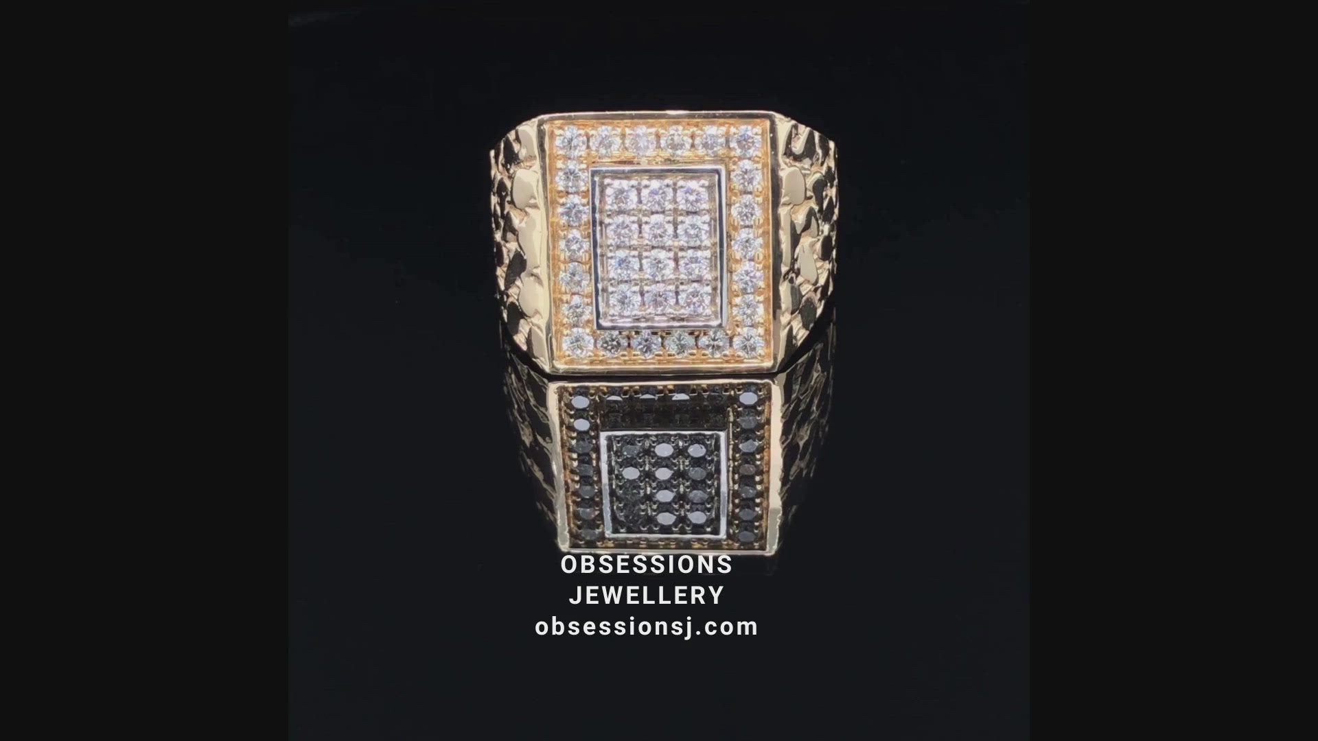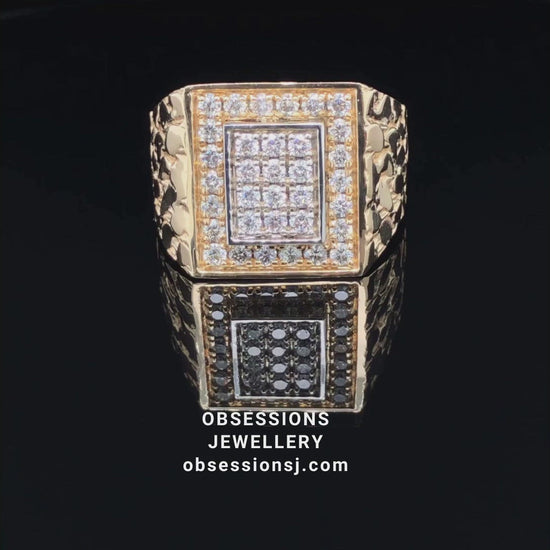 This 14k yellow gold solid men's nugget style ring is handmade with 1.25 carat of total round cut-diamonds. This ring has a square top with 12 slightly larger diamonds set in an inner square surrounded with a halo of diamonds to give it a rich and stunning look. This beautiful look is sure to add a touch of brilliance to your style.