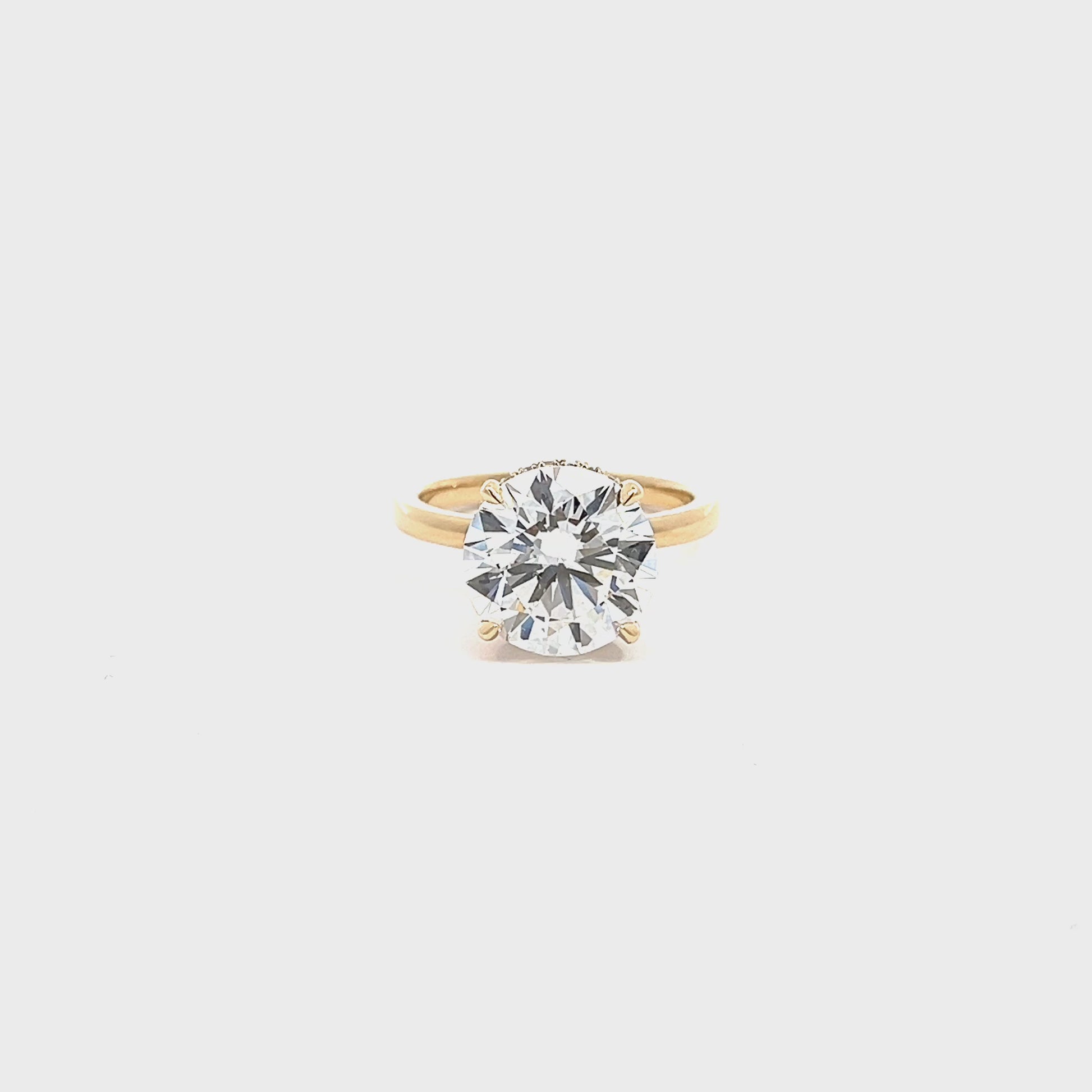 Beautifully crafted in 14K yellow gold, this stunning engagement ring features an impressive 5.01-carat round lab-grown diamond at the center. Designed in a classic solitaire style, the ring is enhanced with a hidden halo of diamonds beneath the center stone, adding extra brilliance and dimension. With a total diamond weight of 5.16 carats, this ring offers exceptional sparkle while maintaining a timeless and elegant look. Perfect for those who want a bold statement piece with refined sophistication. The diamond will be IGI certified and the certificate will accompany the ring.