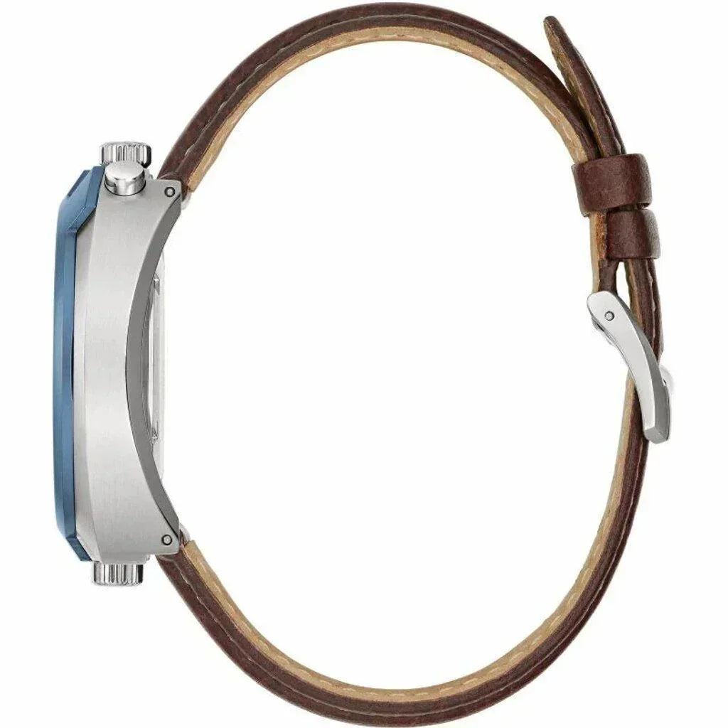 Inspired by the iconic original introduced in 1973 during “The Golden Age of the Bulova Chronograph,” Bulova is proud to present the Archive Re-edition of the sensational timepiece, known as the “Parking Meter.” The return of the coveted classic features the reimagined signature design of the dial configuration, resembling a classic parking meter – which gives this model its notable nickname. It is further distinguished by the unique placement of its pushers and the crown at the 6-hour. The silver-tone and slate-blue stainless steel case features a silver-white chronograph dial showcasing the parking meter and includes a calendar, tachymeter, and dual time ring. The 6H rotates the dial ring that measures a 2nd time zone. Finished with an anti-reflective sapphire crystal, it also features a sporty padded top-stitched brown leather strap with buckle closure and water resistance to 100 metres. Limited to 5 ,000 individually numbered pieces worldwide, this highly sought-after timepiece is a Bulova collector’s favourite and a must-have for watch enthusiasts who want to own a piece of Bulova’s storied history.