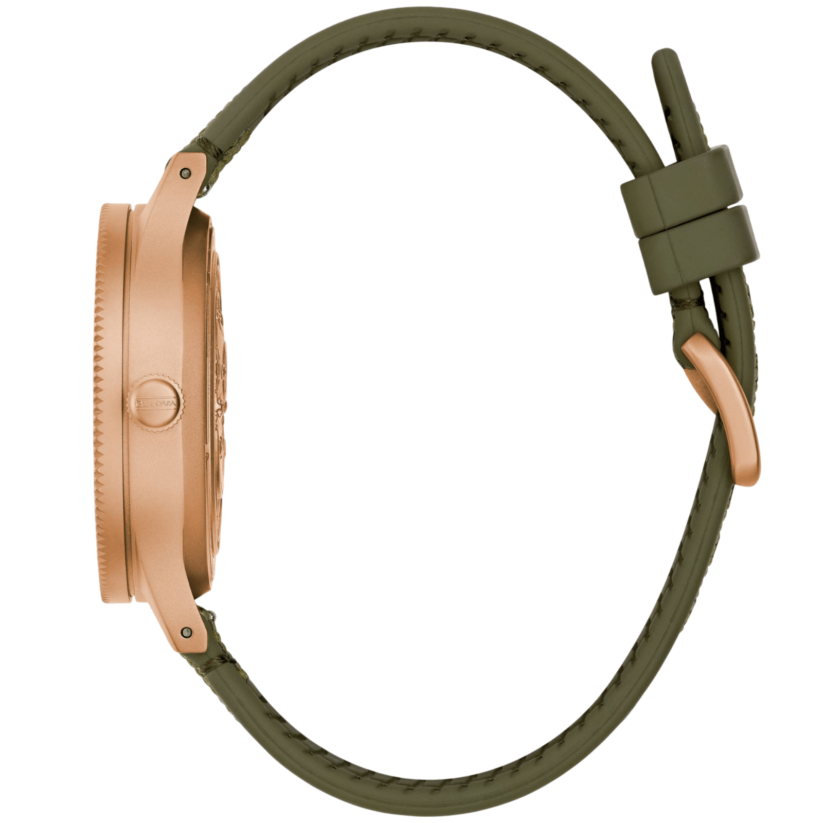 Honouring Bulova’s storied history with the armed forces and based on a rare prototype from 1957 developed for the U.S. Navy, the Special Edition MIL-SHIPS Bronze celebrates Bulova’s 150th Anniversary and its legacy of innovation and fine craftsmanship. This newly reimagined timepiece features an elevated design with a sandblast-finished case made of CuSn8 bronze, a lustrous material with a rose-gold hue reminiscent of 19th-century copper diving helmets. Bronze is much stronger than copper, and over time, it forms a natural patina, adding a protective layer that enhances its durability and enriches its unique, timeless look. Distinctive features include an army green dial with a?matching aluminum bidirectional bezel insert, a vintage-inspired handset with super luminous hands and markers, a bi-colour moisture strip indicator strip, and a double-domed sapphire crystal with a?5-layer anti-reflective coating. Paired with an upgraded army green 18mm strap made of a hybrid of rubber and Cordura® nylon for durability and comfort and powered by a 21-jewel automatic movement with a 60-hour reserve, it showcases a commemorative 150th Anniversary embossed case back and is water resistant up to 200 metres. Delivered in premium packaging with a storybook, this heritage-inspired MIL-SHIPS Bronze men’s timepiece is a must-have for collectors and enthusiasts alike.