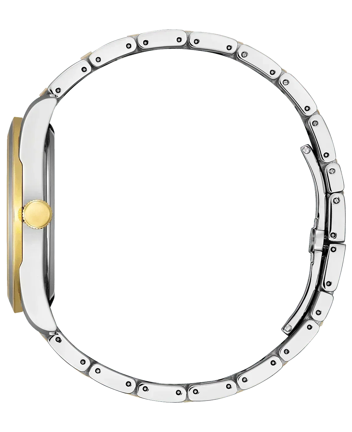 Citizen Eco-Drive round, two-tone stainless steel case and bracelet, white dial, 40mm, Sapphire Crystal, WR50, DCP.