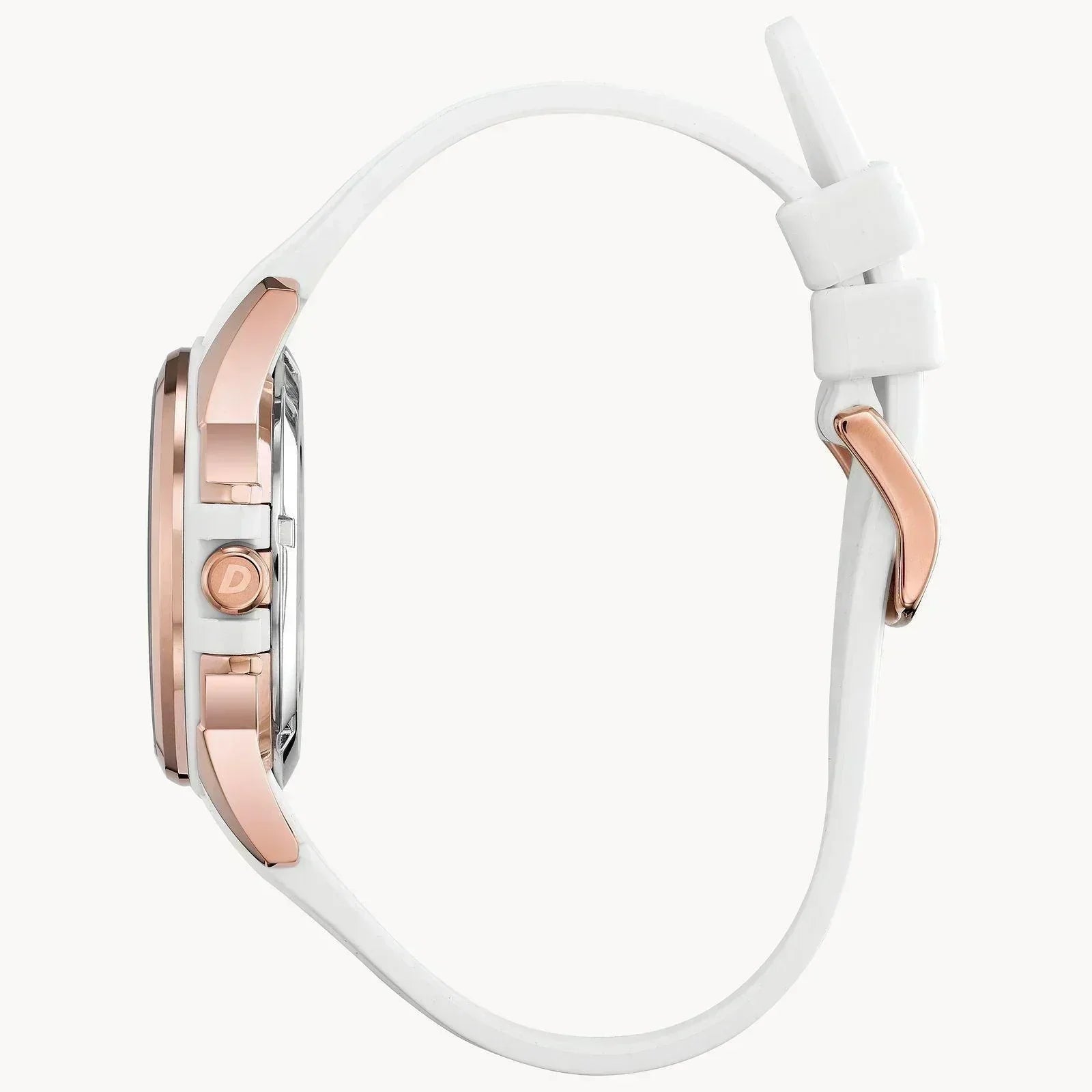 Celebrate the best in basketball with this CITIZEN Naismith Commemorative watch featuring a special edition caseback. With Eco-Drive technology, this is more than just a solar watch, it's a timepiece powered by any light. Featured in a pink gold-tone stainless steel case with white proprietary chroma finishing accents, white silicone strap, and silver dial with date. Case size 38 mm. Water resistant up to 100 metres.