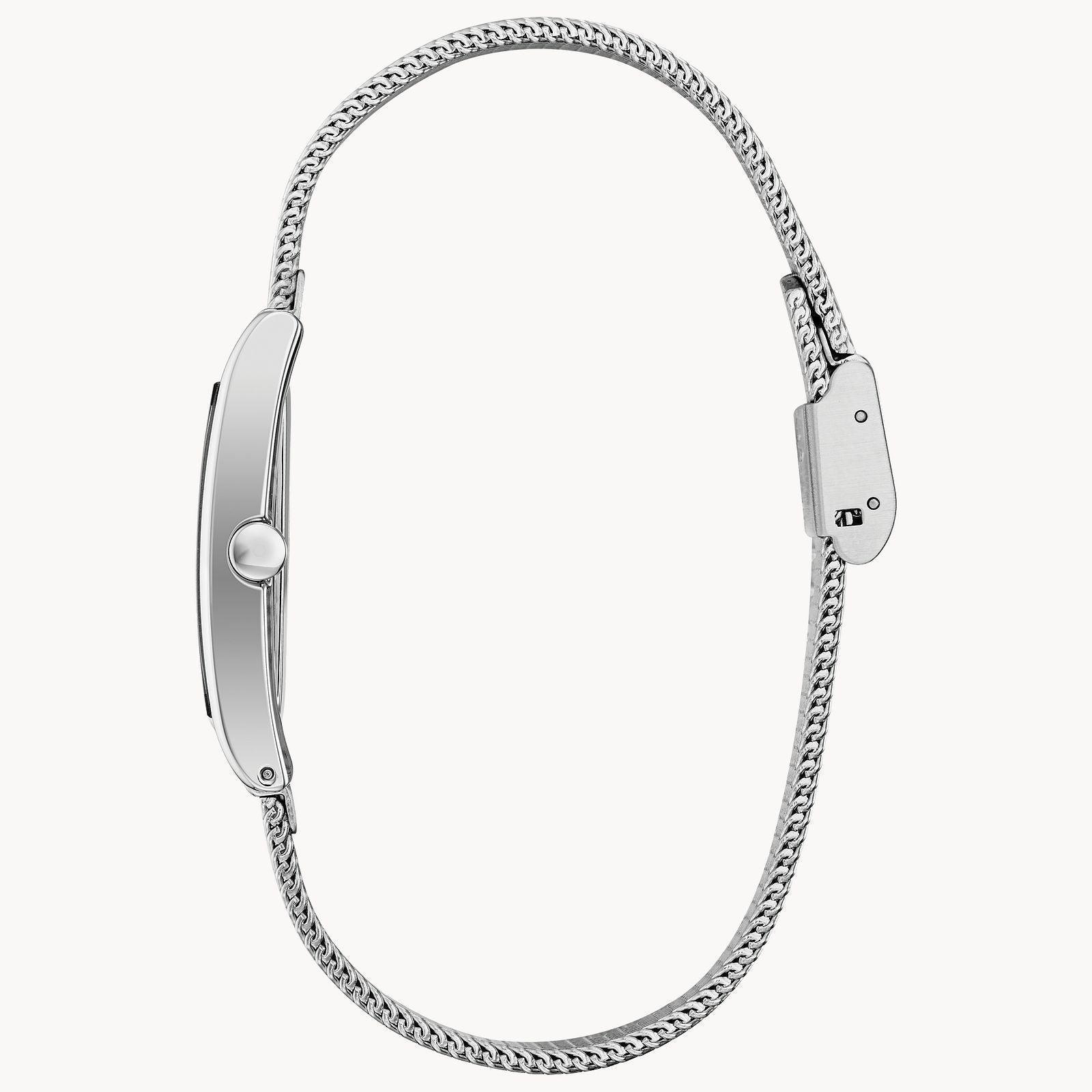 Eco-Drive technology - powered by light, any light. Never needs a battery,Citizen Eco-Drive™ FAQ Watch Sizing Guide Set the trend with your outstanding style wearing the Citizen Watches Axiom watch. Tank-style stainless steel case. Stainless steel shark mesh bracelet. Sliding clasp closure. Two-hand analog display with quartz movement. Using the most advanced technology in watch making, the Eco-Drive Perpetual Calendar never needs a battery. Black dial face features diamond index hour markers and brand name. Case size 26x37 mm.