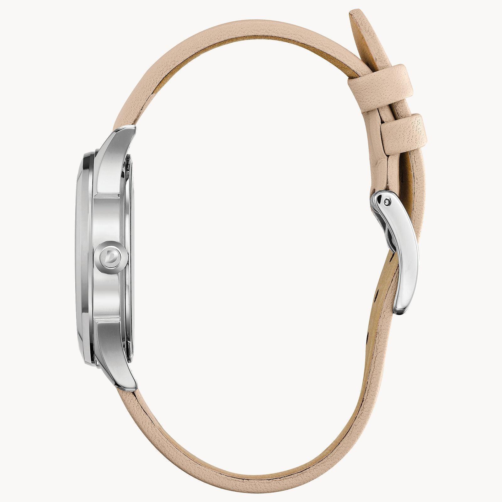 Make room in your watch collection for the new DRIVE from CITIZEN. The LTR, a fresh staple to your every day watch wearing with clean lines and simplistic detailing, is more than just a solar watch, it's a timepiece powered by any light with Eco-Drive technology. Featured in a stainless steel case, a blush pink strap, and a white dial with date. Case size 34 mm.