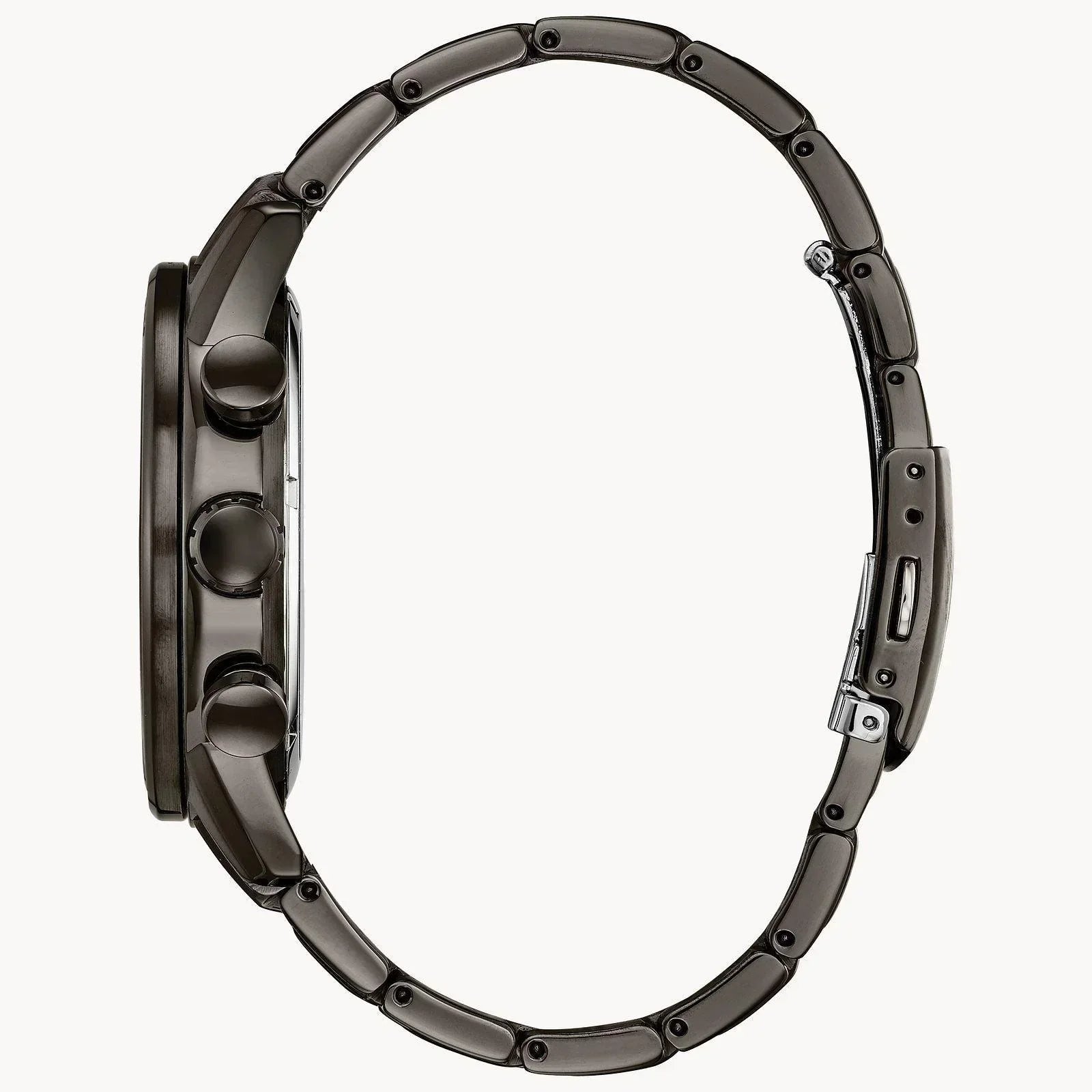 Time to hit the racetrack with CITIZEN's reinvented Primo chronograph. A watch that keeps up with your speedy lifestyle and features Eco-Drive technology, making it more than just a solar watch, it's a timepiece powered by any light. Shown in grey ion plated stainless steel with a jet black dial and bright yellow accents, a 1/5-second chronograph that measures up to 60 minutes, 12/24-hour time, and date. Case size 45 mm. Water resistant up to 100 metres.