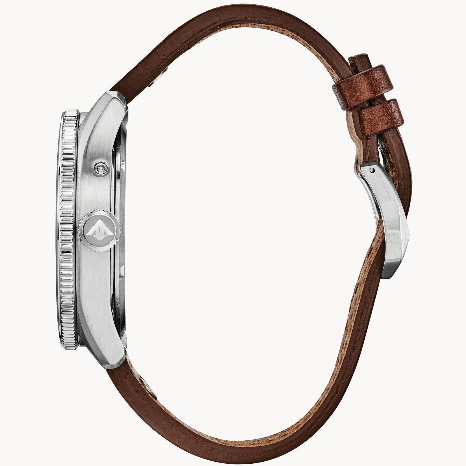Revamped and reinvented, the antique styled CITIZEN PROMASTER Nighthawk is here to stay. Features include world time in 26 time zones, perpetual calendar, anti-shock and date. Shown here in a stainless steel case, coffee brown leather strap with yellow contrast stitching and royal blue dial. Featuring our Eco-Drive technology powered by light, any light. Never needs a battery. Case size 44 mm. Water resistant at 200 meters.