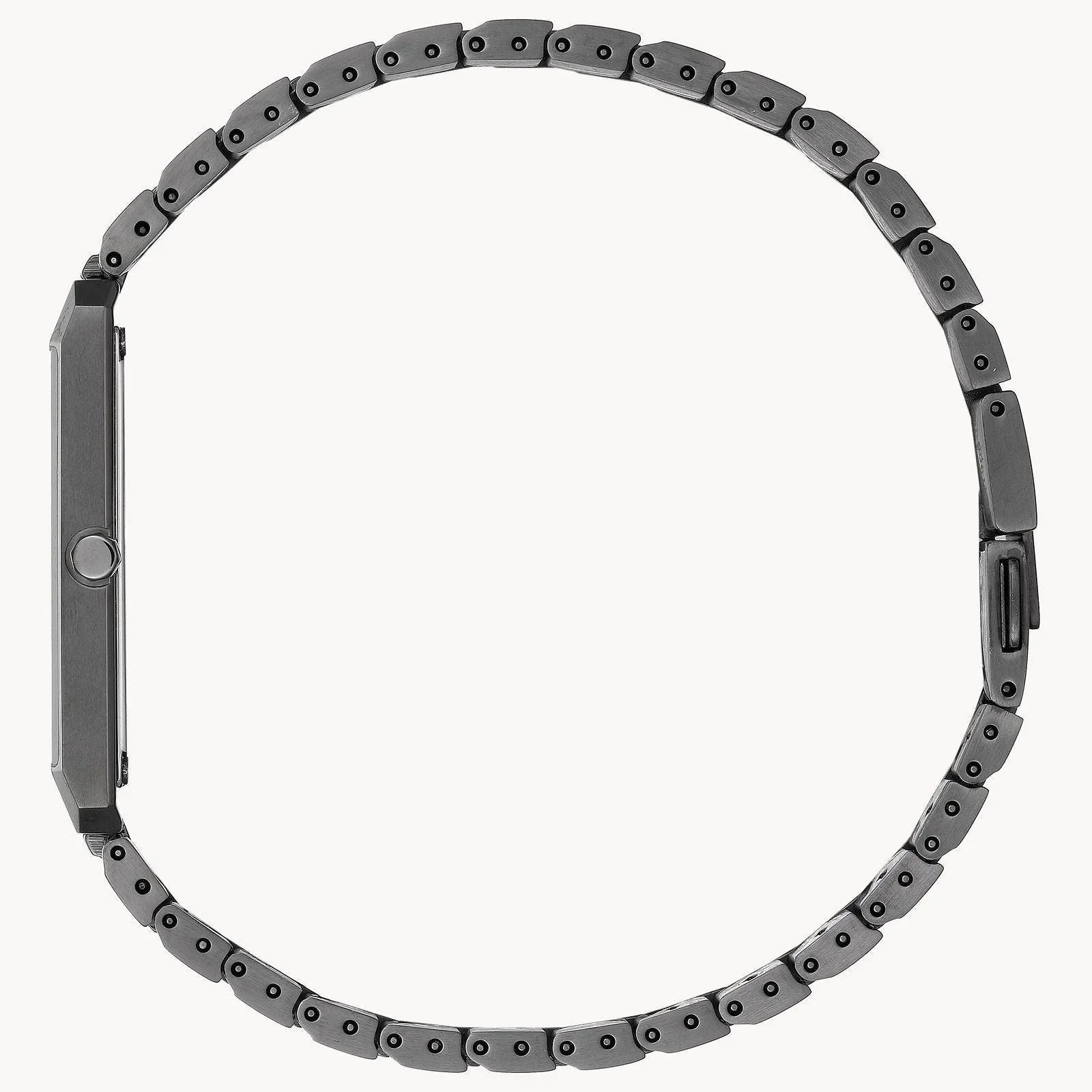 This Stiletto from CITIZEN is a sleek timepiece that complements every outfit it is worn with. The black stainless steel bracelet and rectangular case is just 5.-6mm (+/- .25mm) thin. The Eco-Drive powered watch has a lay-flat clasp, and was intentionally designed as a unisex timepiece that will be comfortable no matter what wrist it rests on. Case size 38x28 mm.