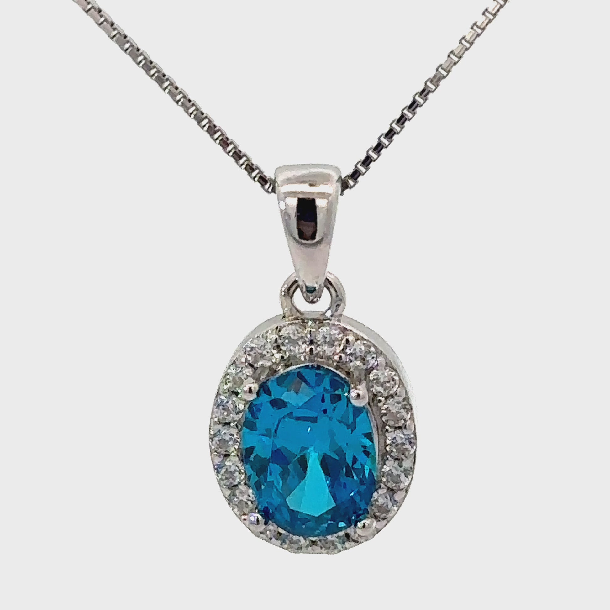 December birthstone CZ Pendant is a perfect gift for anyone who loves the blue color of the birthstone. The Oval-shaped pendant features a large, sparkling Blue CZ stone in the center, surrounded by small, clear CZ stones that add extra shine. The pendant is made of sterling silver and comes with a matching chain. This pendant is a beautiful accessory that will complement any outfit and occasion.