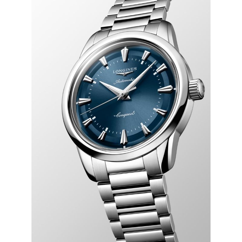 An evocation of daring and creative spirit, the Conquest collection was the first Longines watch line to have its name protected by the Swiss Federal Intellectual Property Office in 1954. A tribute to the first Conquest models launched over 70 years ago, the Conquest Heritage line will appeal to all lovers of vintage design. The Conquest Heritage watches seamlessly blend the classic style of the 1950s with modern watchmaking technology. Scratch-resistant sapphire crystal, with several layers of anti-reflective coating on both sides. Automatic movement self-winding mechanical movement beating at 25'200 vibrations per hour, with a monocrystalline silicon balance-spring power reserve up to 72 hours. Water-resistant to 5 bar / 50 meters. Double security folding clasp with micro adjustment system.