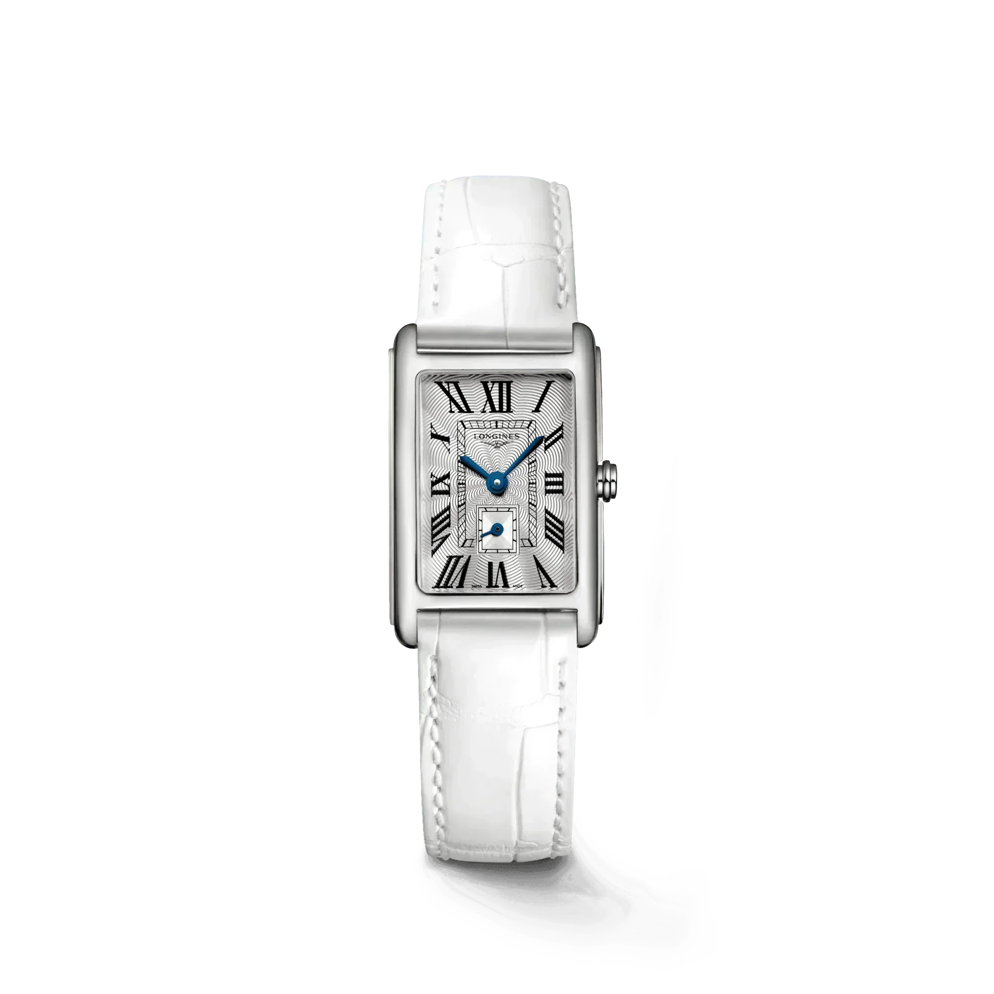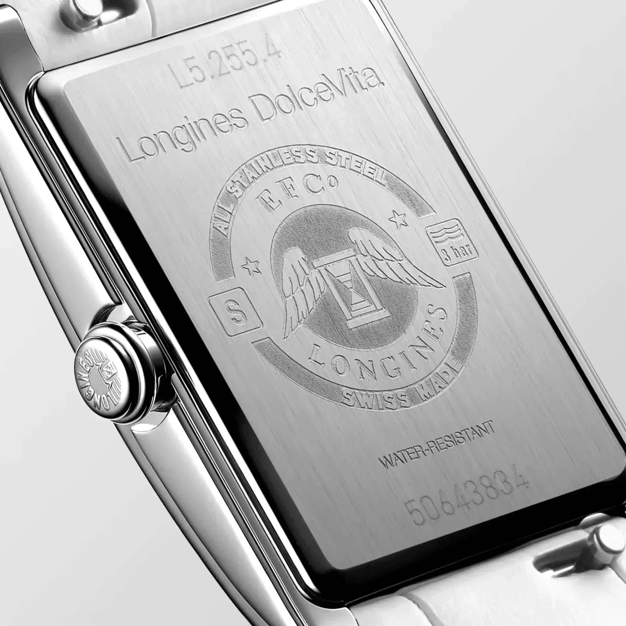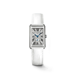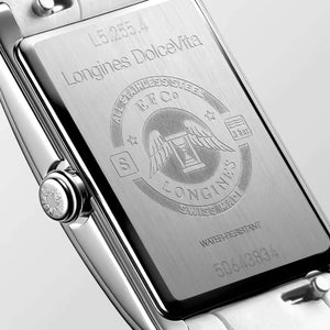 The Italian Way of Life Enhanced by a timeless elegance. Since its inception, the Longines DolceVita collection has illustrated contemporary elegance of the Longines watchmaking brand worldwide. Inspired by the "Dolce Vita", it is an homage to the sweetness of life. Today, a new chapter in this collection opens with a unique interpretation featuring softened lines. These new variations will not fail to impress women who have made charm a way of life. Stainless steel with Silver "flinqué" dial. Rectangular case shape. Scratch resistant sapphire crystal. Alligator leather with buckle clasp with easily change your bracelet/strap thanks to the Longines interchangeable system. Automatic Self-winding mechanical movement beating at 28'800 vibrations per hour, with a power reserve of approximately 45 hours. Water resistance up to 30 meters. Functions: Hours, minutes, seconds and date.