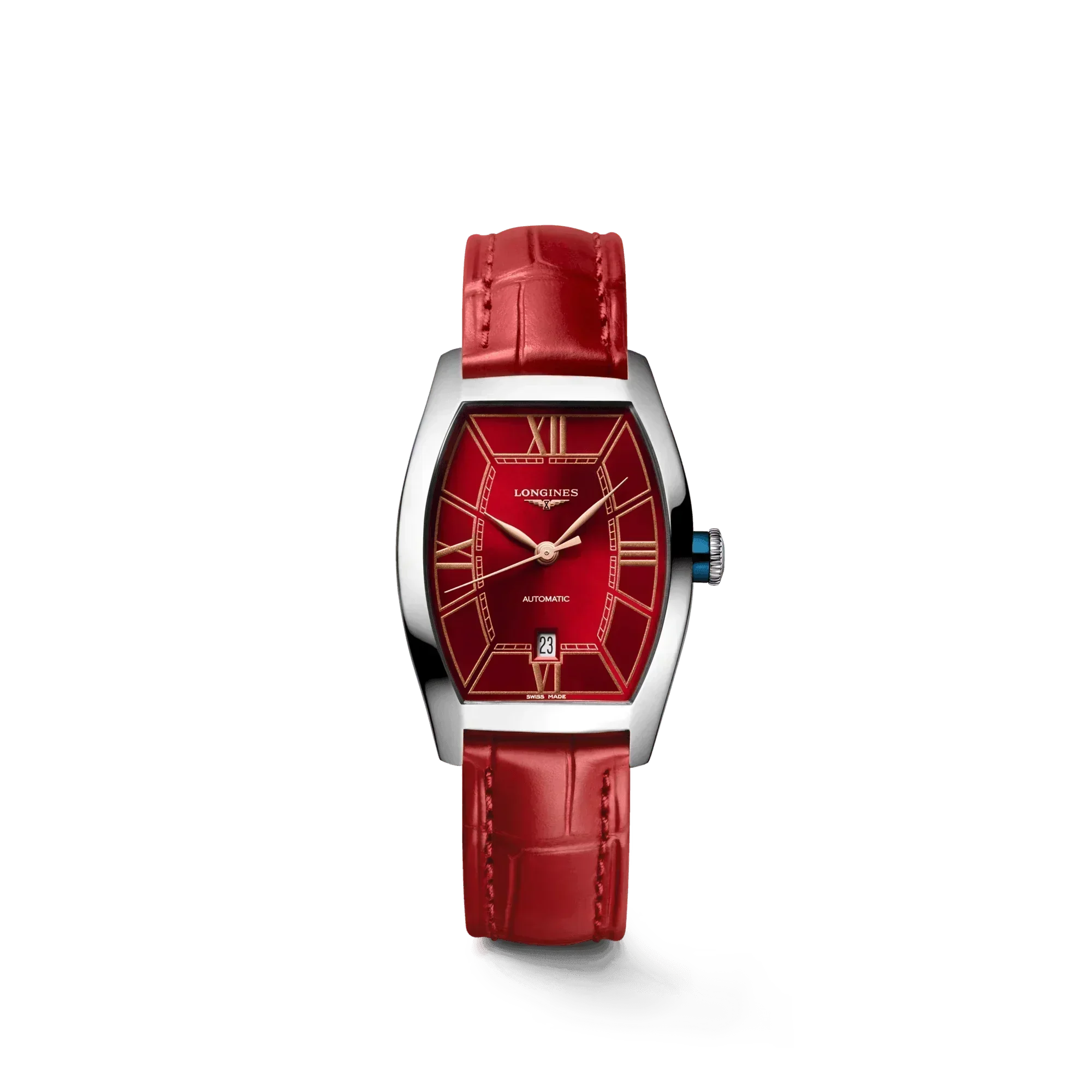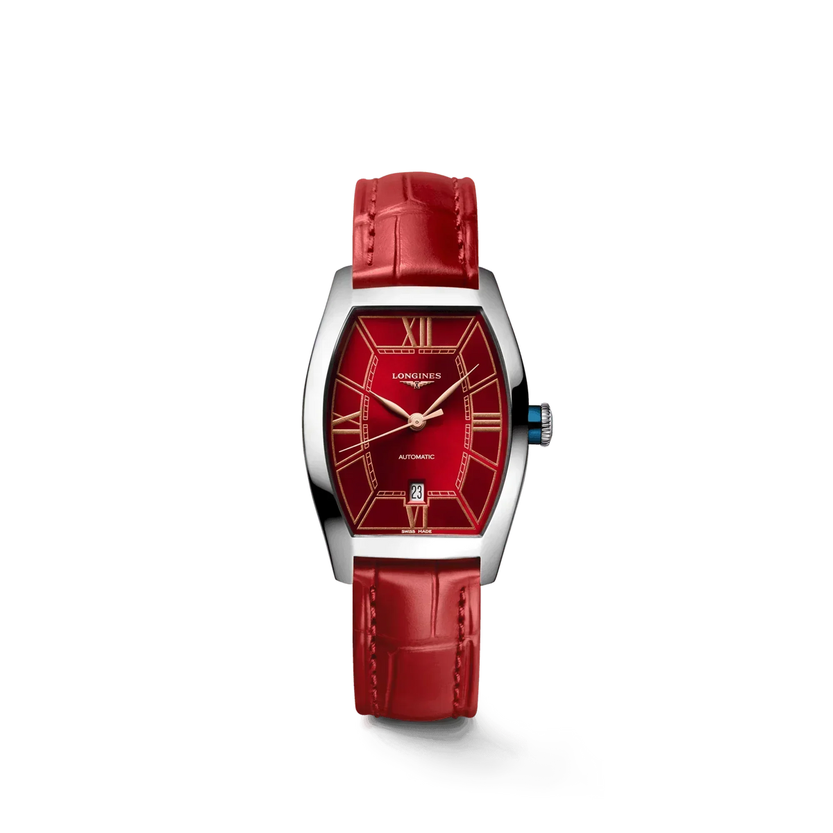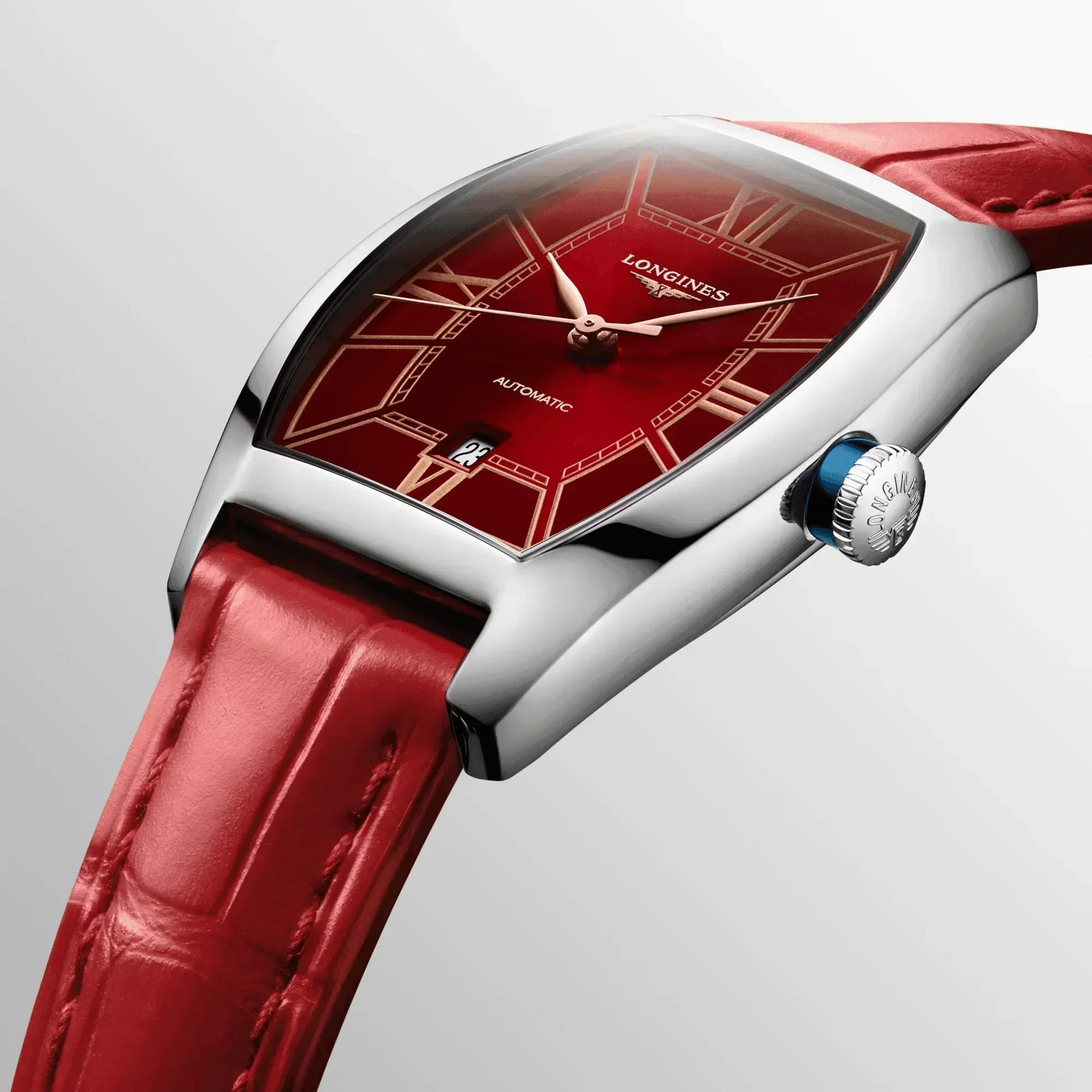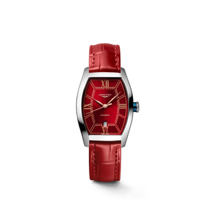 True elegance is forever. Who could forget the 1920s? It was a time of rapid change throughout the world, starting with important progress in many areas, as well as an incredible degree of freedom for artists, and of course stylists too. Fashion and design threw off rigid, centuries-old rules while personal accessories of every description grew increasingly handy, compact and stylish. The ladies’ and men’s watches of the Longines evidenza collection draw their inspiration from that broad shift in habits and styles. While a 1925 model inspired the specific design of Longines evidenza, its tonneau shape goes back to a Longines model dating from 1911. Stainless steel with red dial. Tonneau case shape. Scratch-resistant sapphire crystal, with several layers of anti-reflective coating on the underside. Alligator leather with buckle clasp. Automatic self-winding mechanical movement beating at 28'800 vibrations per hour, with a power reserve of approximately 45 hours. Functions: Hours, minutes, second and date. Water resistance up to 30 meters.