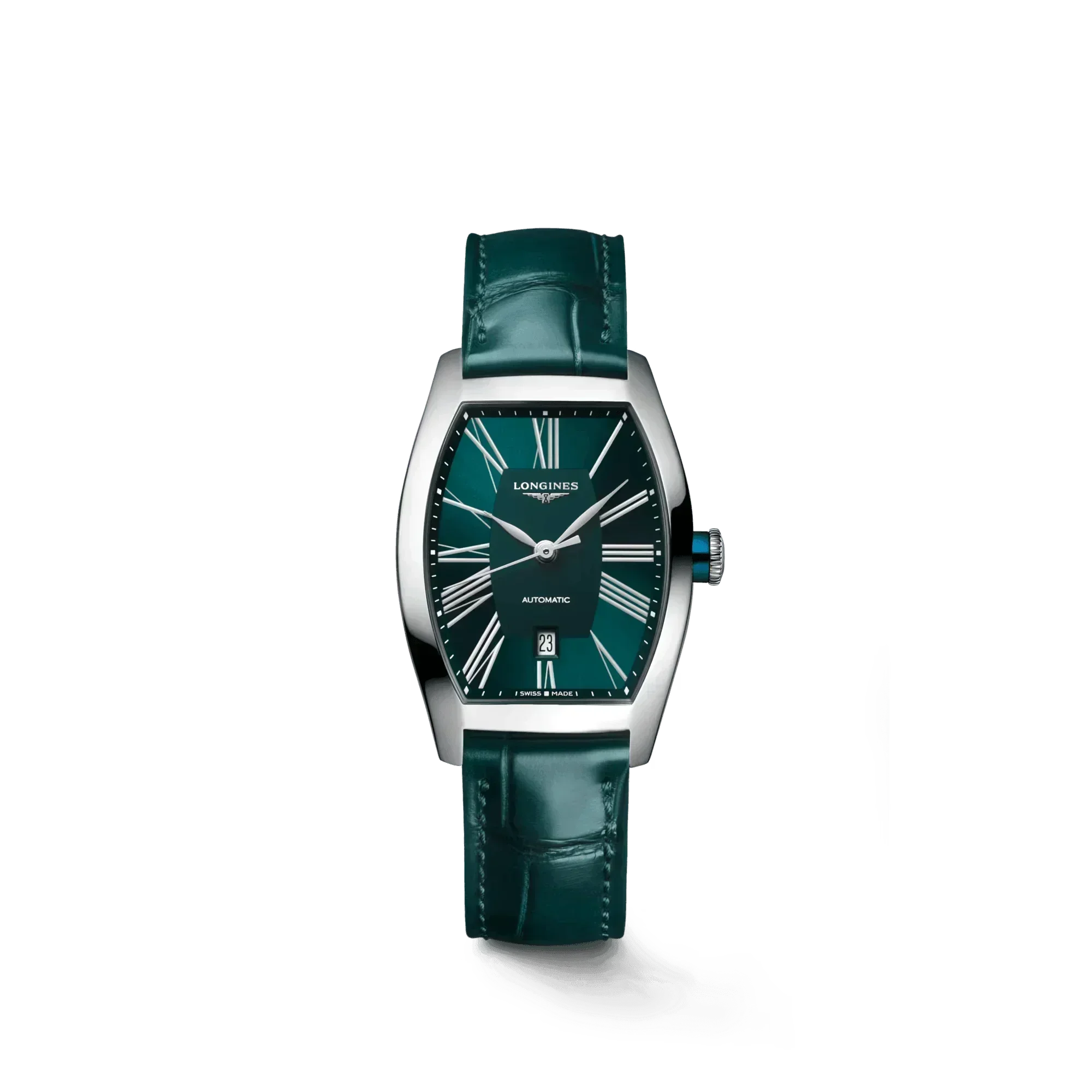 True elegance is forever. Who could forget the 1920s? It was a time of rapid change throughout the world, starting with important progress in many areas, as well as an incredible degree of freedom for artists, and of course stylists too. Fashion and design threw off rigid, centuries-old rules while personal accessories of every description grew increasingly handy, compact and stylish. The ladies’ and men’s watches of the Longines evidenza collection draw their inspiration from that broad shift in habits and styles. While a 1925 model inspired the specific design of Longines evidenza, its tonneau shape goes back to a Longines model dating from 1911. Stainless steel with Petroleum dial. Tonneau case shape. Scratch-resistant sapphire crystal, with several layers of anti-reflective coating on the underside. Alligator leather with buckle clasp. Automatic self-winding mechanical movement beating at 28'800 vibrations per hour, with a power reserve of approximately 45 hours. Functions: Hours, minutes, second and date. Water resistance up to 30 meters.
