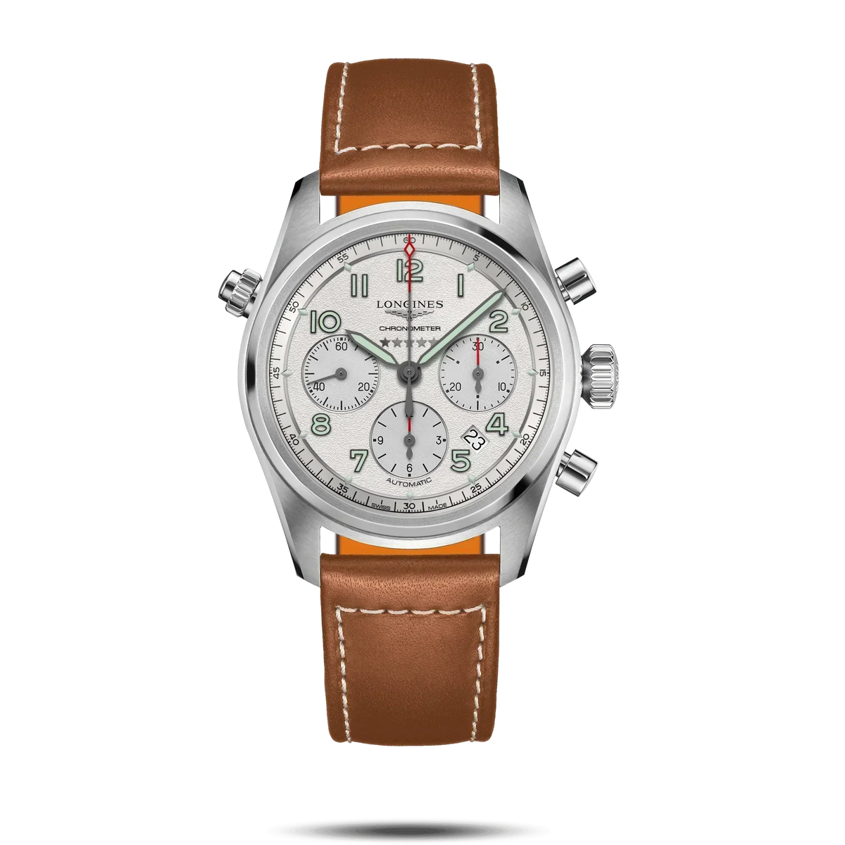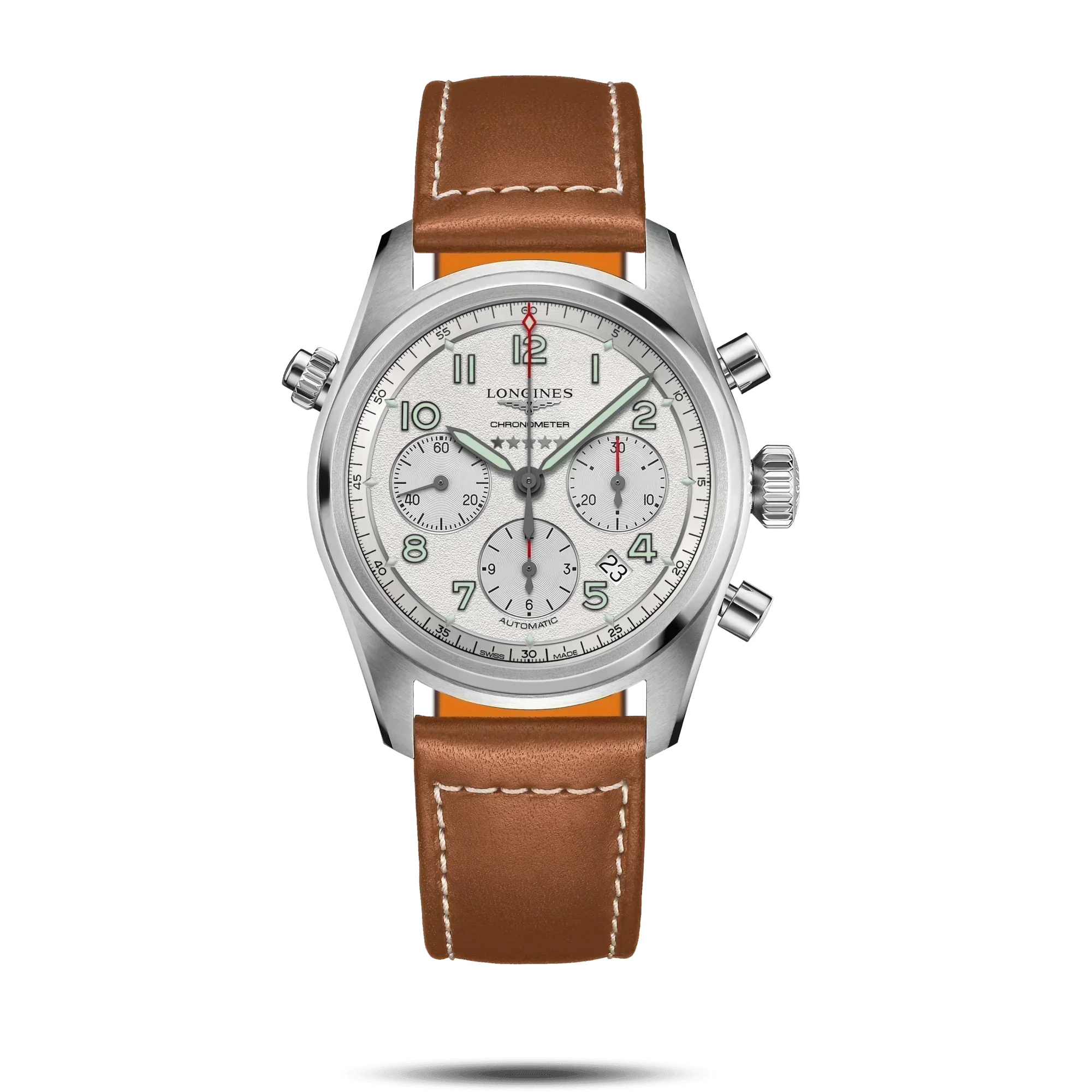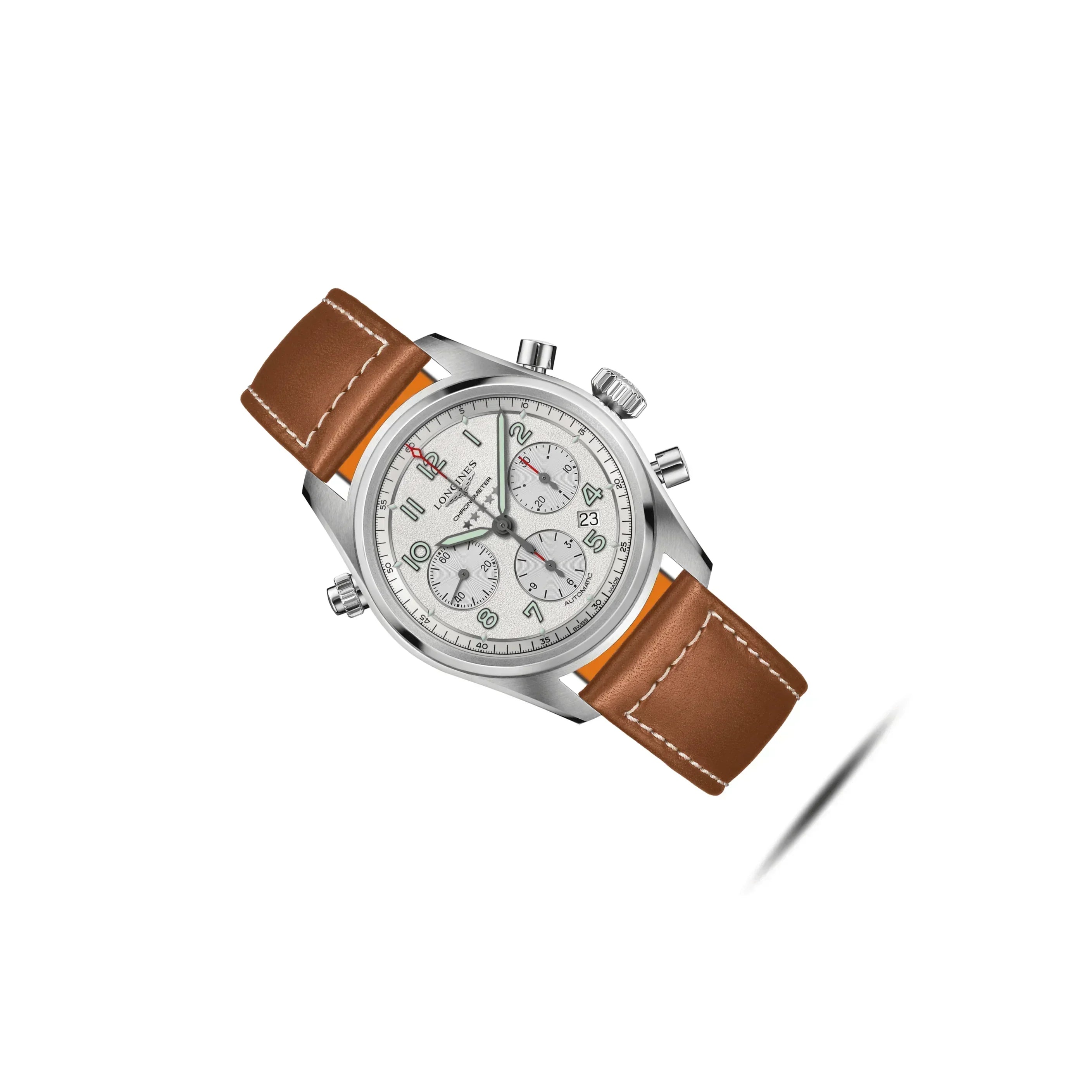 The Pioneer Spirit Lives On. Historically, Longines has accompanied legendary pioneers as they conquer air, land and sea. Today, the winged hourglass brand has drawn inspiration from this heritage to create Longines Spirit, a collection with an impeccable pedigree. This collection links history with innovation by combining references to the glory days of aviation with present-day aesthetic and technical requirements. These resolutely contemporary timepieces are a testimony to the pioneering spirit that has inspired the brand since its earliest days. A glowing tribute to these exceptional men and women who, by a record, an exploit or a display of courage, have left their mark on history - pushing new generations to surpass themselves. Stainless steel with silver dial. Round case shape. CASE SPECIFICITIES: Screw-in crown. Scratch-resistant sapphire crystal, with several layers of anti-reflective coating on both sides. Calf leather with buckle clasp. Automatic Self-winding mechanical movement beating at 28'800 vibrations per hour, with a monocrystalline silicon balance-spring power reserve of approximately 66 hours. Functions: Hours, minutes, small seconds at 9 o'clock and date. Water resistance up to 100 meters.
