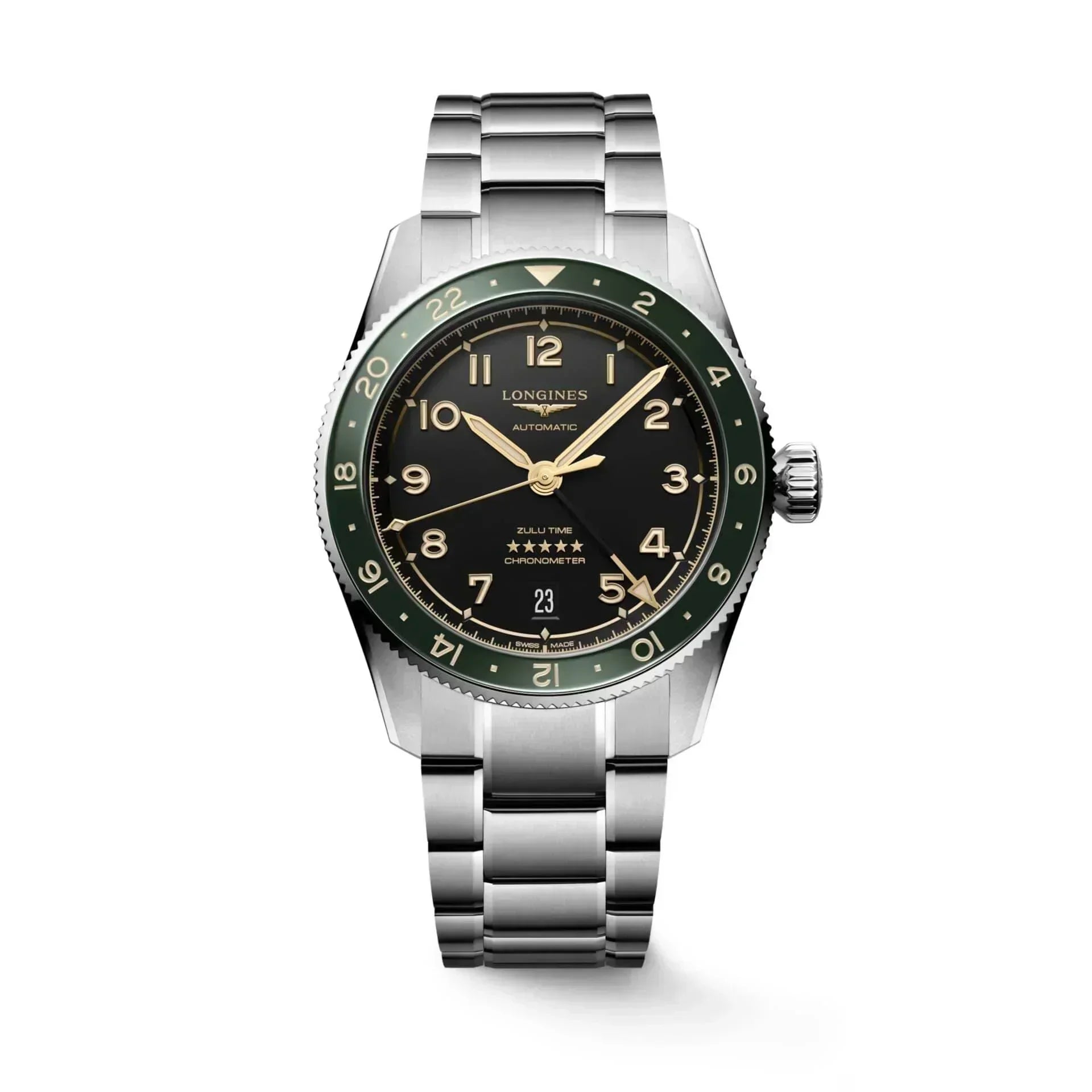 With the launch in 2022 of the Longines Spirit Zulu Time, the winged hourglass brand added a new chapter to its already rich history. Featuring multiple time zones, it marked a continuation of Longines’ precision instruments worn by the world’s greatest pioneers on their legendary exploits. That modern legend is now complemented with the addition of the Longines Spirit Zulu Time in an ergonomically-pleasing and stylish 39mm case. This model features a bezel enhanced with a green ceramic insert, and is available on an anthracite sandblasted dial, with a date window centred at the 6 o'clock position. The 39 mm steel case has an elegant interchangeable stainless steel bracelet.