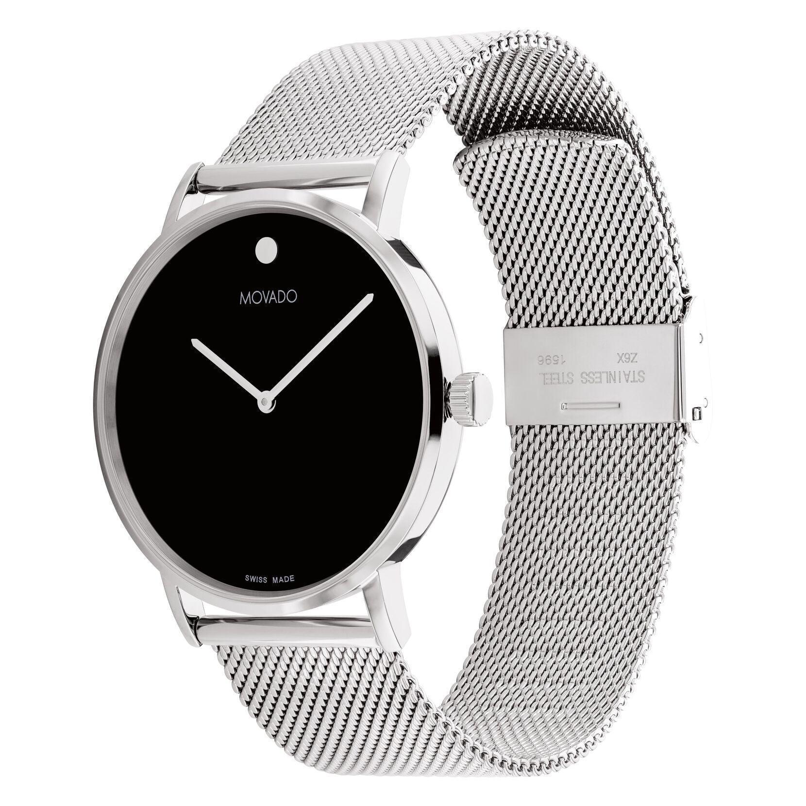 Men's Movado Signature, 40mm Stainless Steel case and mesh bracelet, black Museum dial, Swiss Movement