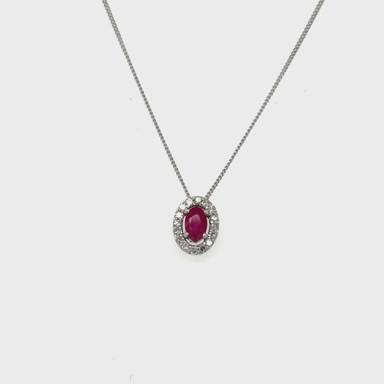 Ruby and Diamond Oval Pendant with 0.10 TDW in 10K White Gold