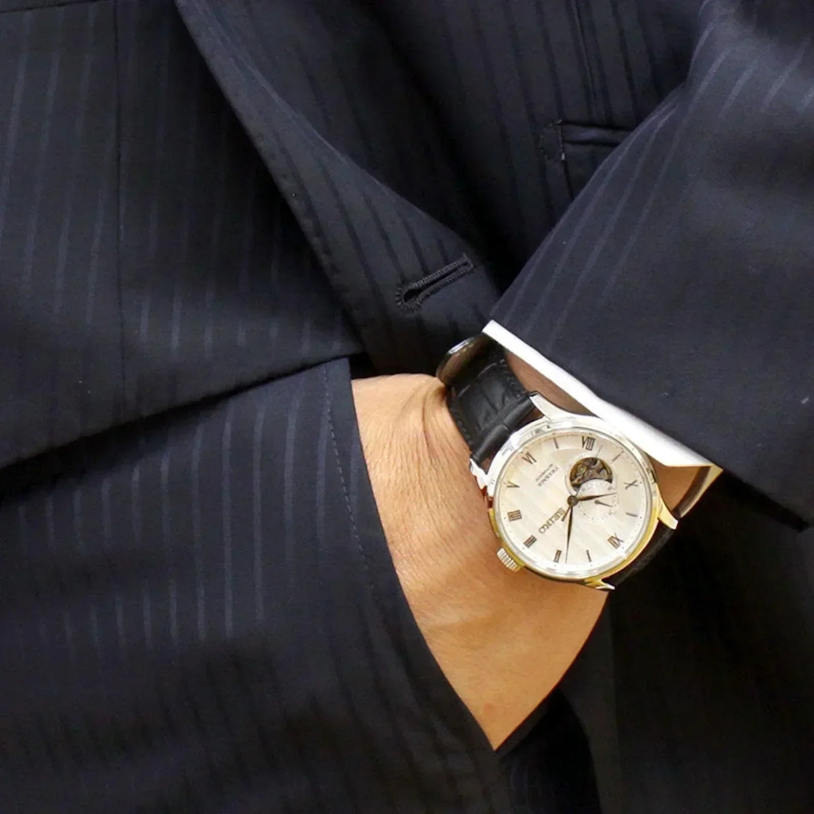 Seiko Presage SSA379J1 White Men Watch This Seiko SSA379J1 watch, oriented for Man, has the stainless steel case, with circular shape and white color. The Bracelet is of Black Leather, and the bezel of Silver color. The crystal is sapphire, the automatic movement, and the analog display. It belongs to the Presage collection. Impermeability: 3 ATM. Among its functions, include the following: Power reserve 41 hours. Classic style diameter: 41.8 mm.