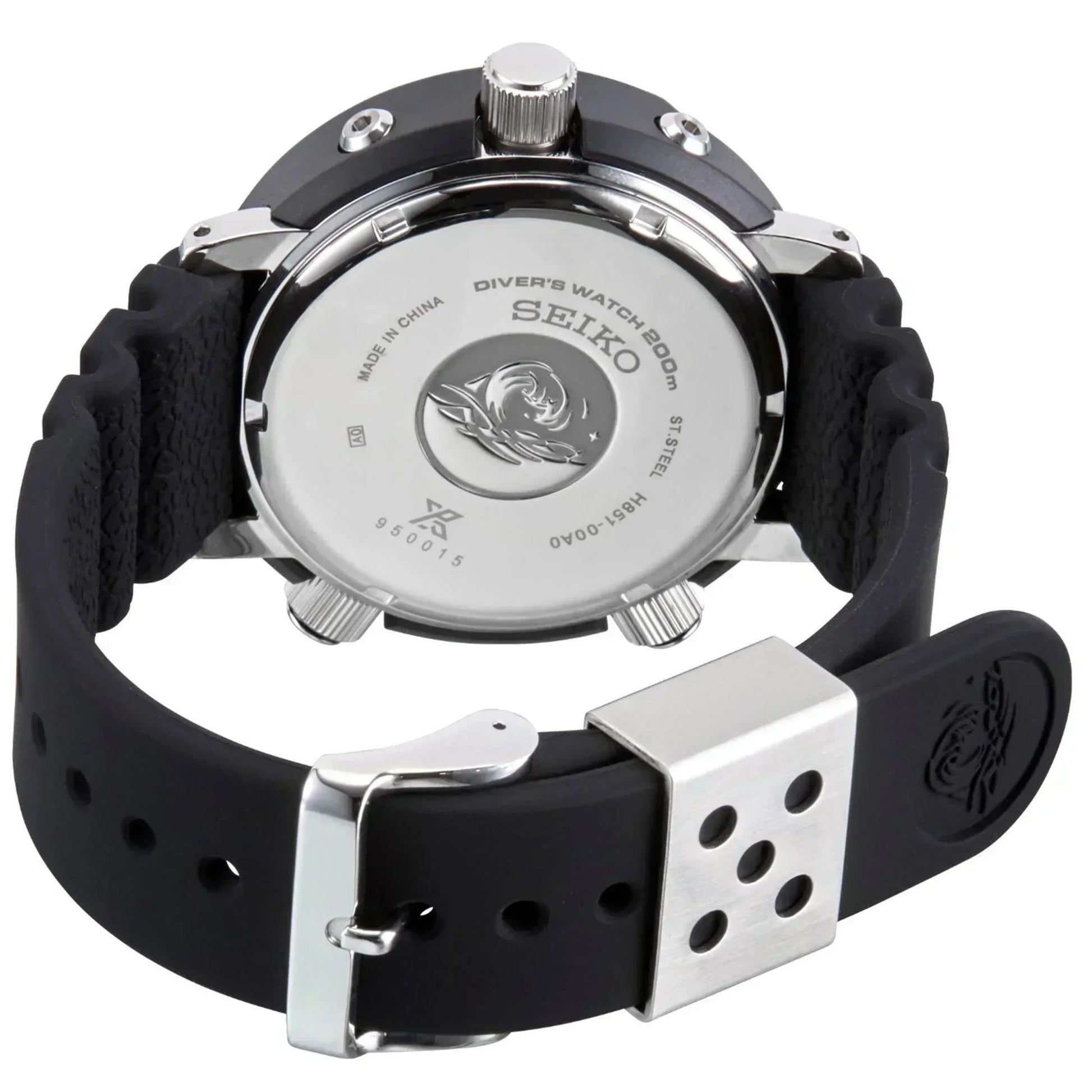 Seiko prospex solar mens watch. Accuracy ±15 seconds per month. 10-month power reserve (when fully charged). Dual-time function, alarm function (daily alarm), power save function. LED (the built-in illuminating light). Case material stainless steel and plastic. Black silicone band and black dial. Hardlex crystal. Case size 47.8 mm.Water resistance up to 200 meters.