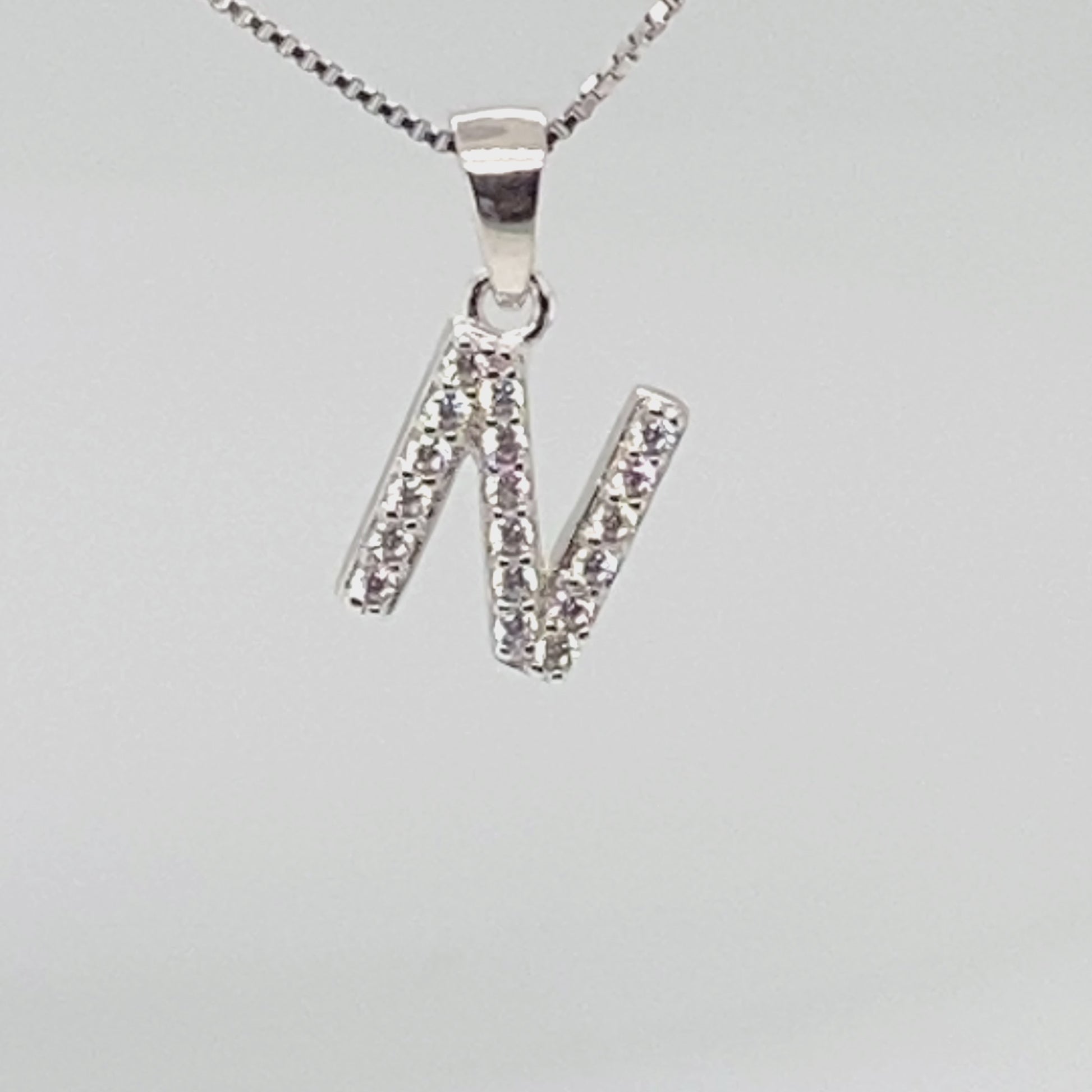 Sterling silver initial letter N pendant. This initial cubic zirconia pendant featuring exceptional design, craftsmanship and finishing. This glorious pendant can be worn by it self or layered with other pendants. Perfect gift for Mothers Day, Birthdays, Valentines Day, Graduation, Christmas or just about any other occasion. Box chain 18 inches length is included.