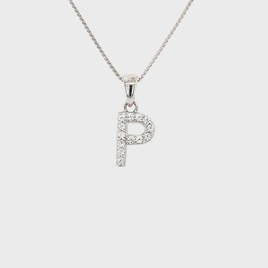 Sterling silver CZ initial "P" pendant. This initial pendant featuring exceptional design, craftsmanship and finishing. This glorious pendant can be worn by it self or layered with other pendants. Perfect gift for Mothers Day, Birthdays, Valentines Day, Graduation, Christmas or just about any other occasion. Box chain 18 inches length is included.