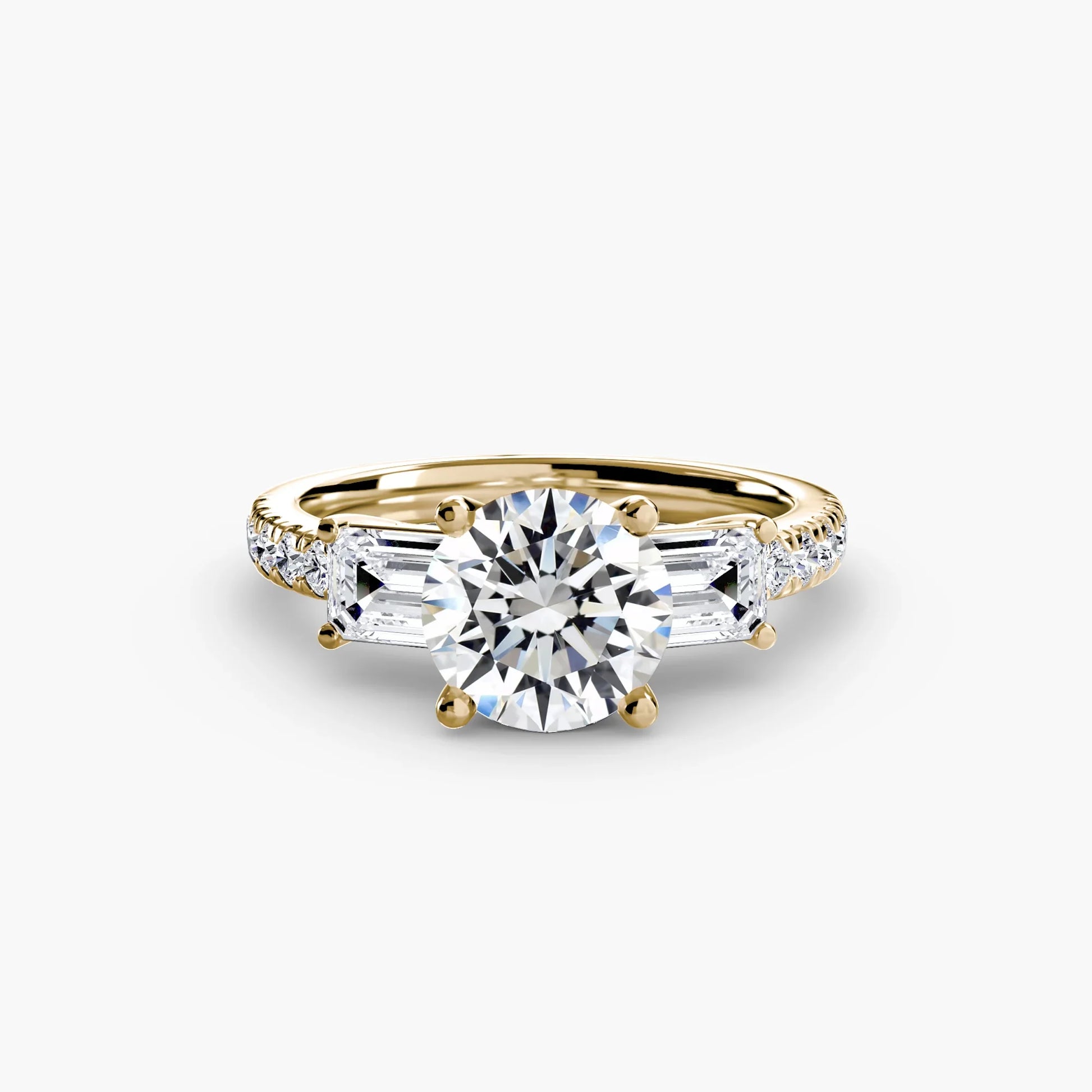 This elegant three-stone ring symbolizes your past, present, and future, elevated with a pavé band for extra sparkle and detail. A perfect union of meaning and brilliance.