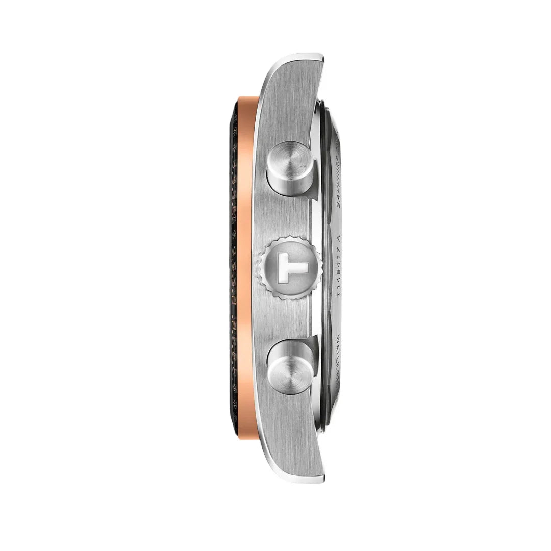 First introduced in the 1960s, the PR516 was inspired by the high-speed world of car racing. As Tissot expands the PR516 line, it continues to fuel the spirit of those who seek a timepiece as relentless as their pursuits—driving them to face challenges head-on, just like the heroes who wear it. The PR516 Quartz Chronograph takes its place at the forefront, with a bold black dial and striking PVD rose gold accents. With its bi-colour stainless steel and PVD rose gold bracelet, this timepiece keeps you in sync with life’s rhythm, ensuring you maintain momentum toward victory. The Quartz chronograph movement offers effortless timekeeping without the need for constant winding, providing the consistency and precision needed in every moment.