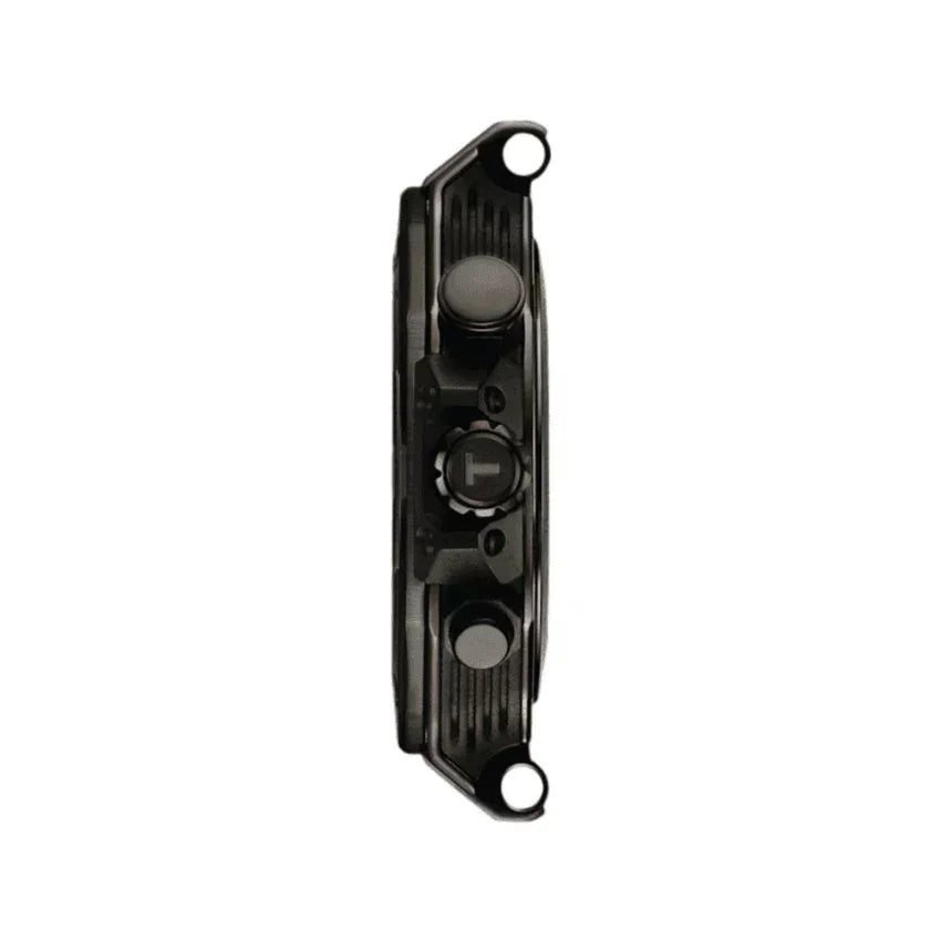 With its new design, including a more elevated dial, the Tissot T-Race Chronograph gets more elegant without denying its sporting roots. Inspired by the partnerships between Tissot and motorcycle racing, the T-Race Chronograph reflects the dynamism of motorcycles and the emotion of the sport. The watch is water-resistant up to a pressure of 10 bar (100 m), equipped with a quartz chronograph movement and features hour and minute hands coated with SuperlumiNova. The scratch-resistant, anti-reflective sapphire crystal guarantees enhanced robustness. This version of the Tissot T-Race Chronograph features a khaki-green PVD-coated stainless steel case, a black dial with khaki accents and a matching rubber strap.