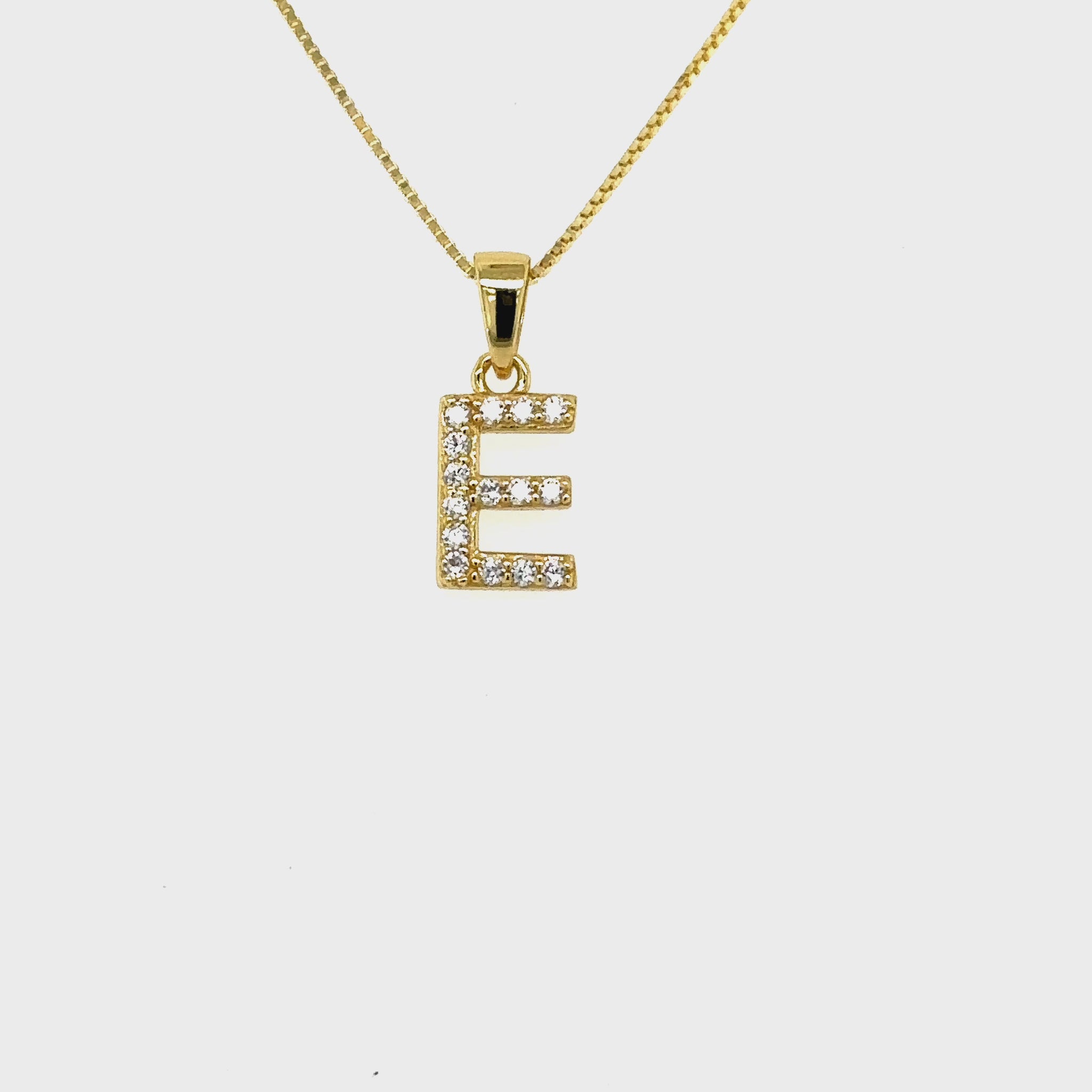 Yellow Gold Plated Sterling Silver CZ Letter E Pendant