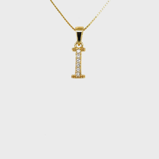 Yellow Gold Plated Sterling Silver CZ Letter I Pendant