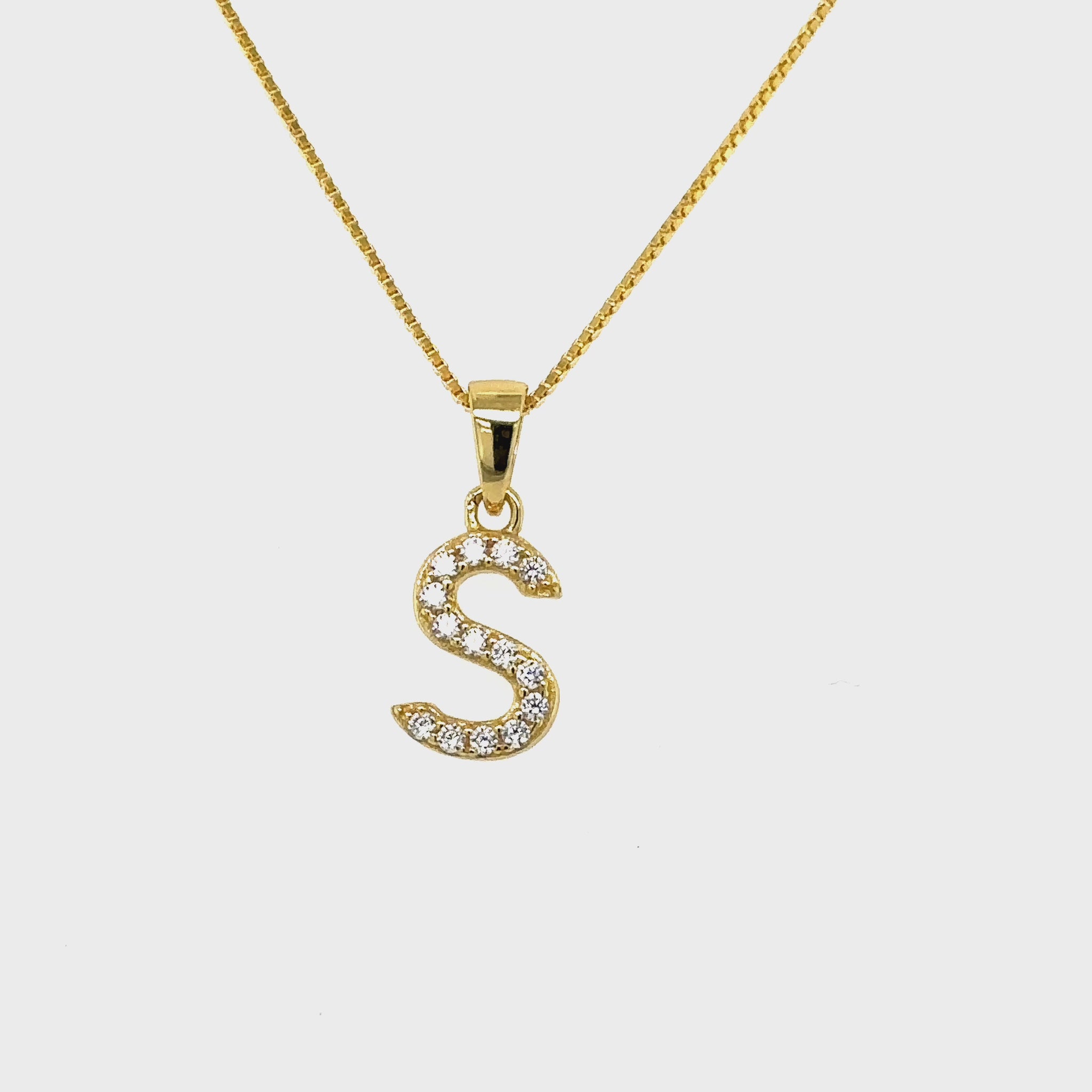 Yellow Gold Plated Sterling Silver CZ Letter S Pendant